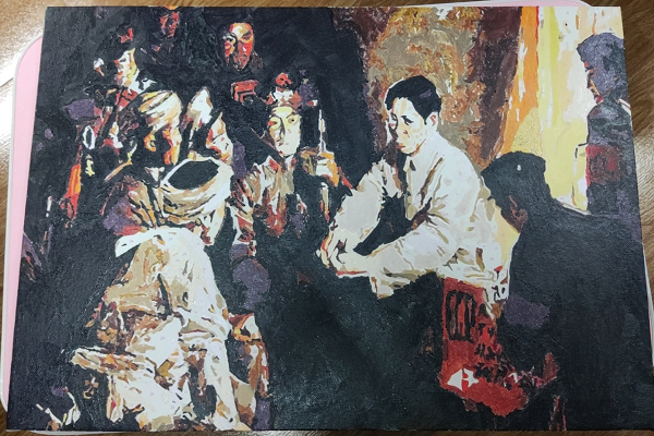 作品简介:这幅图讲述了长征困难时期,毛主席和红军同志促膝长谈的画面。这种互动式的交流,使得毛主席能够更好地理解红军的实际情况,从而制定出更为科学合理的战略和战术。同时,红军战士们也能够从毛主席那里得到指导和鼓励,增强了他们战胜困难的信心和决心。面对生死存亡的关头,毛主席并没有选择严厉的训诫或者命令,而是选择了与红军战士们促膝长谈,共同探讨如何战胜困难,走向胜利。