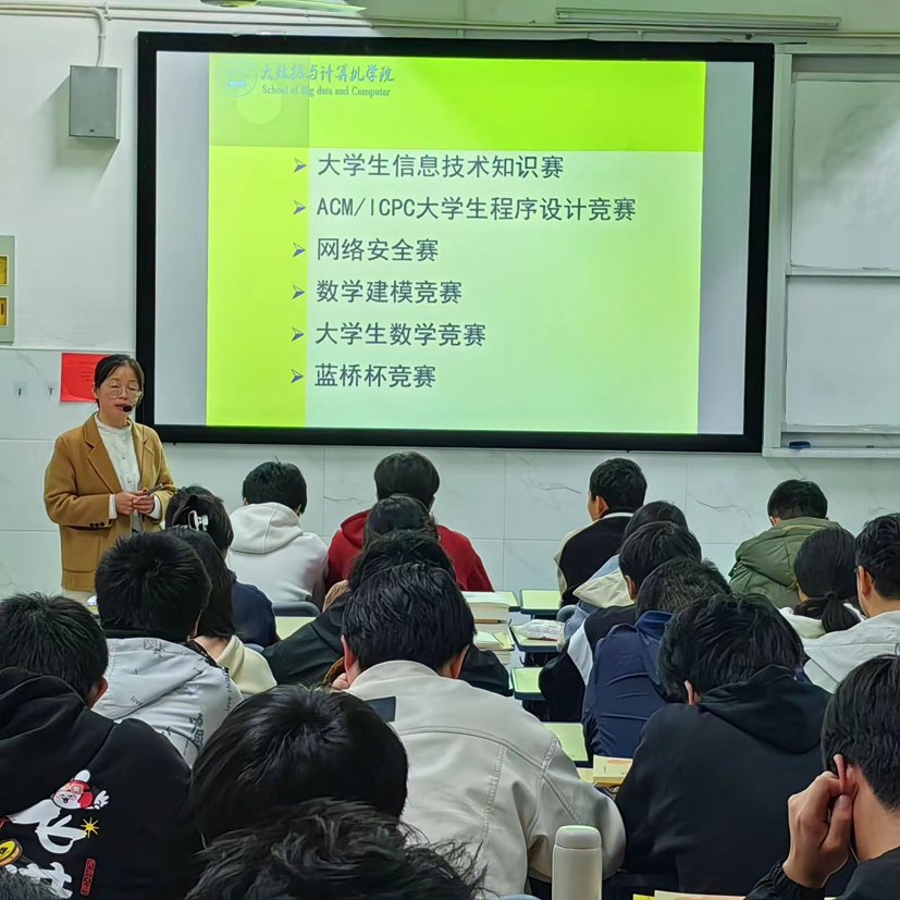 3月26日,大数据与计算机学院何赤平副教授在C206给2023级学生举办了一场别开生面的大学生学科竞赛讲座。本次讲座旨在提高学生对学科竞赛的认识和兴趣,引导大家积极参与,挖掘自身的潜力。