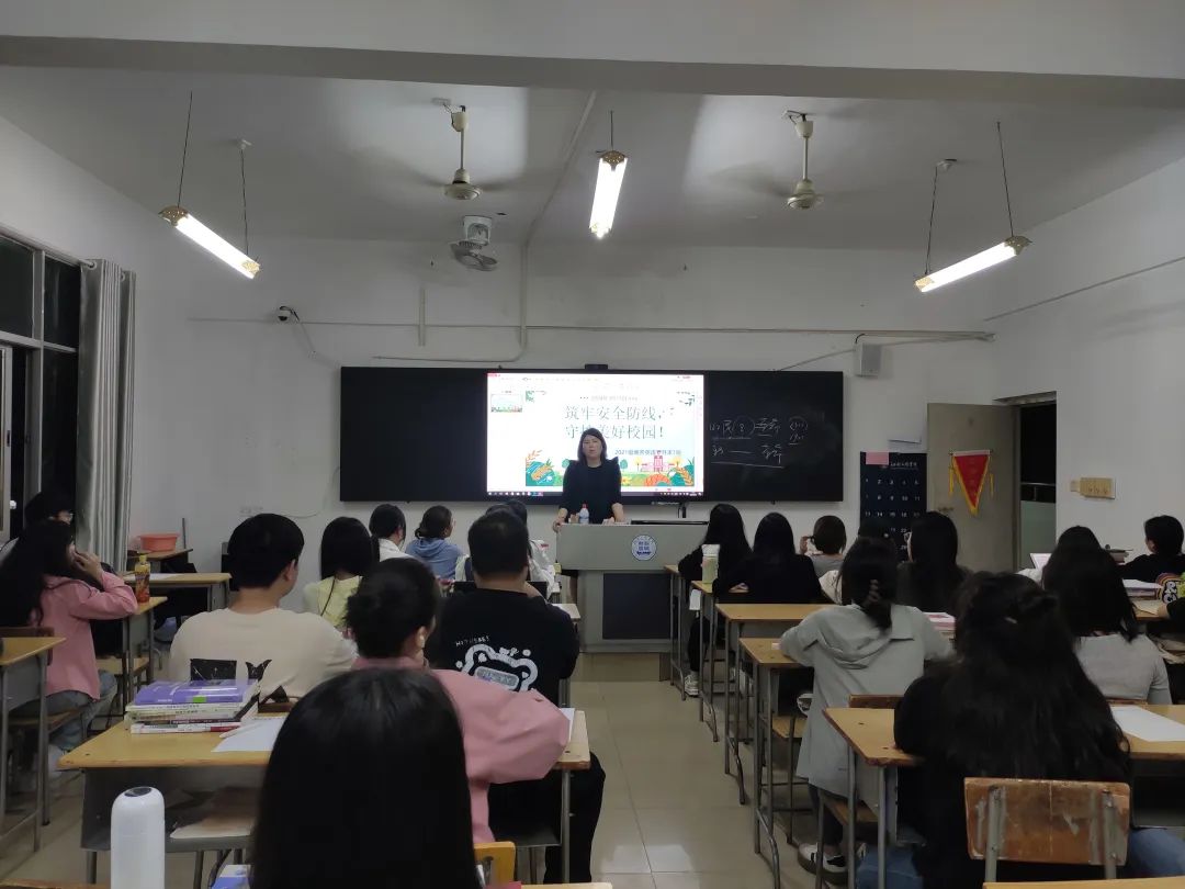 为引导师生积极投身平安校园建设实践,营造平安和谐的校园环境,语言与传播学院于3月31号晚自习开展以“筑牢安全防线,守护美好校园”为主题的班会。