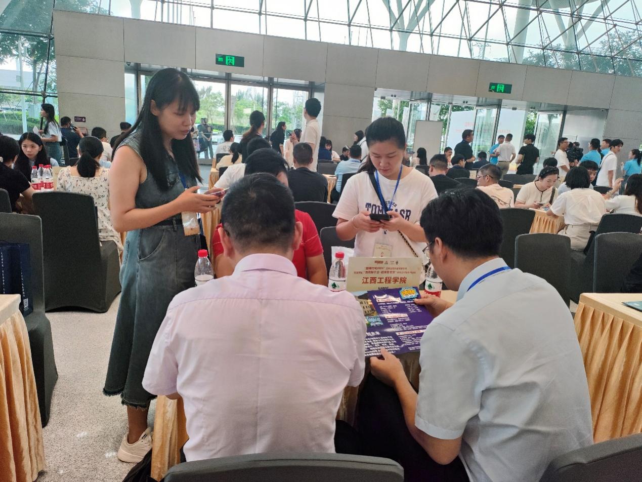 现场交流环节,冯赟、王长旺向各参会企业详细介绍了学校基本情况及专业设置、2025届毕业生生源信息、就业工作举措并诚邀各企业秋招到学校开展招聘宣传活动。冯赟、王长旺主动对接宝安区参会企业,了解企业招聘需求,推介2025届毕业生,开展访企拓岗活动。