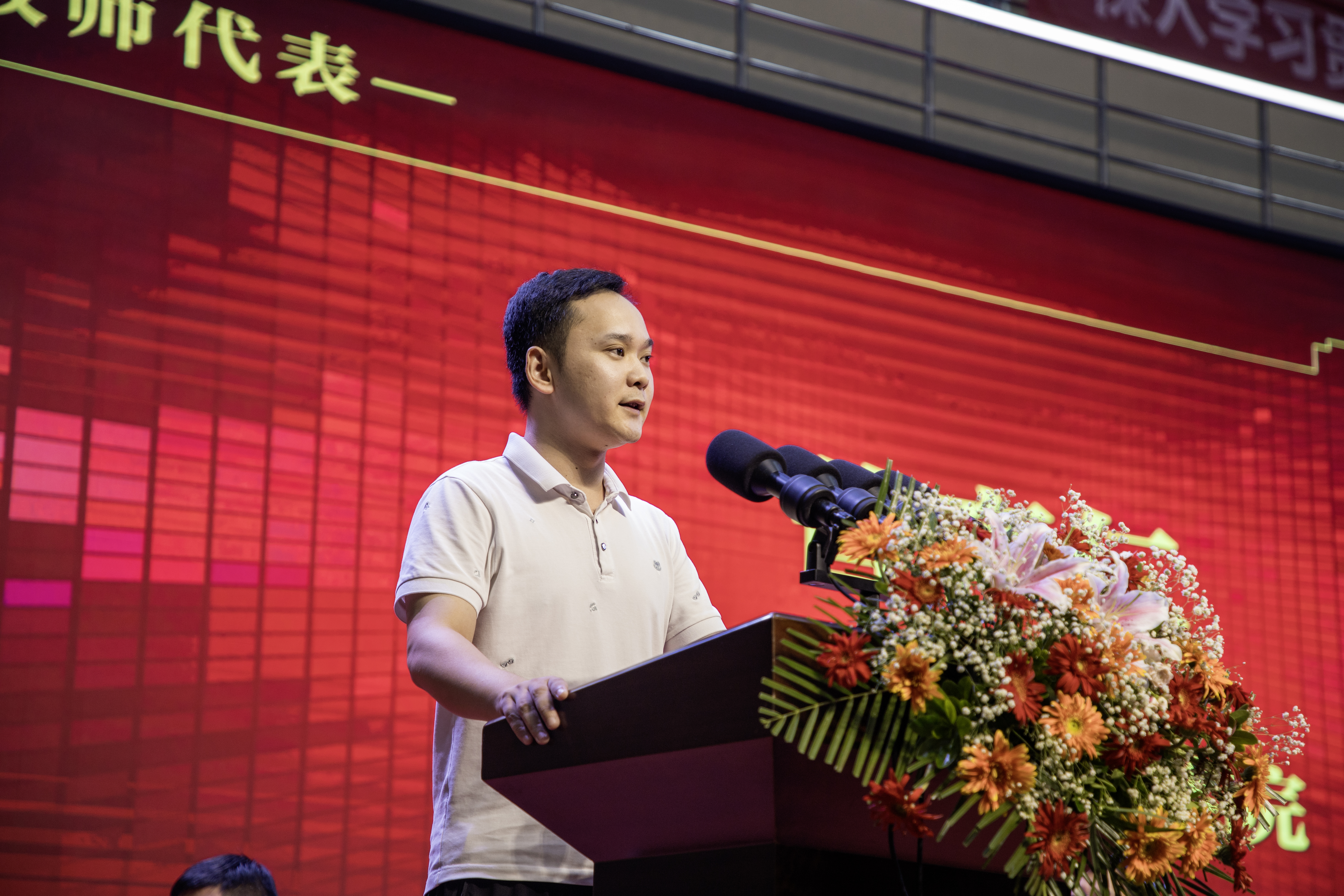 马克思主义学院教师曾育仁代表全体教师对2024级新生表示最真挚的欢迎。他叮嘱新同学要合理规划自己的大学生活,注重时间管理和自我成长,尽快适应全新的学习环境,积极参与课程学习,确保知识的深入掌握,努力成为更好的自己,为未来打下坚实的基础。