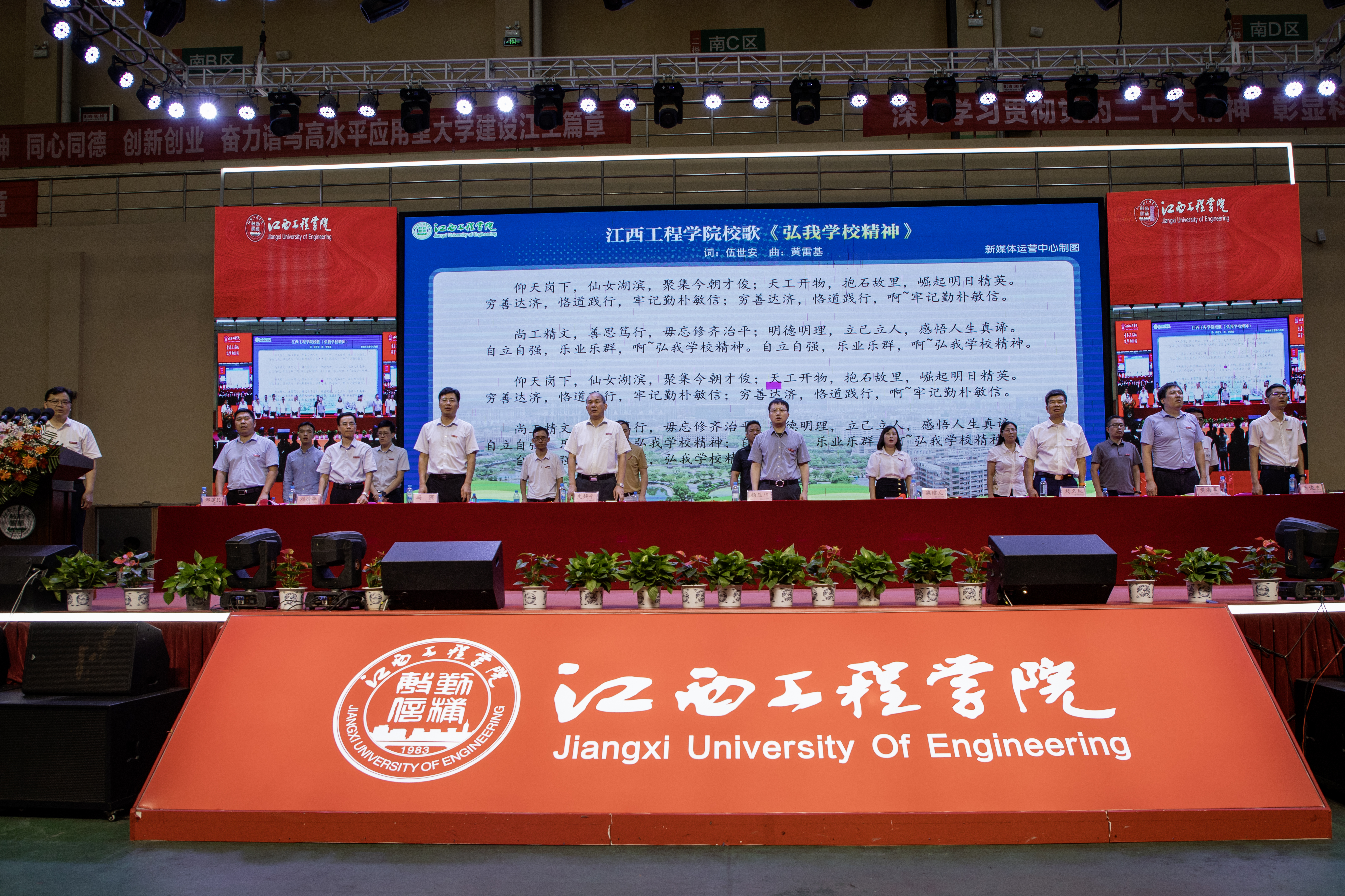 “仰天岗下,仙女湖滨,聚集今朝才俊。天工开物,抱石故里,崛起明日精英……”开学典礼在全体师生齐声高唱江西工程学院校歌中圆满落幕。