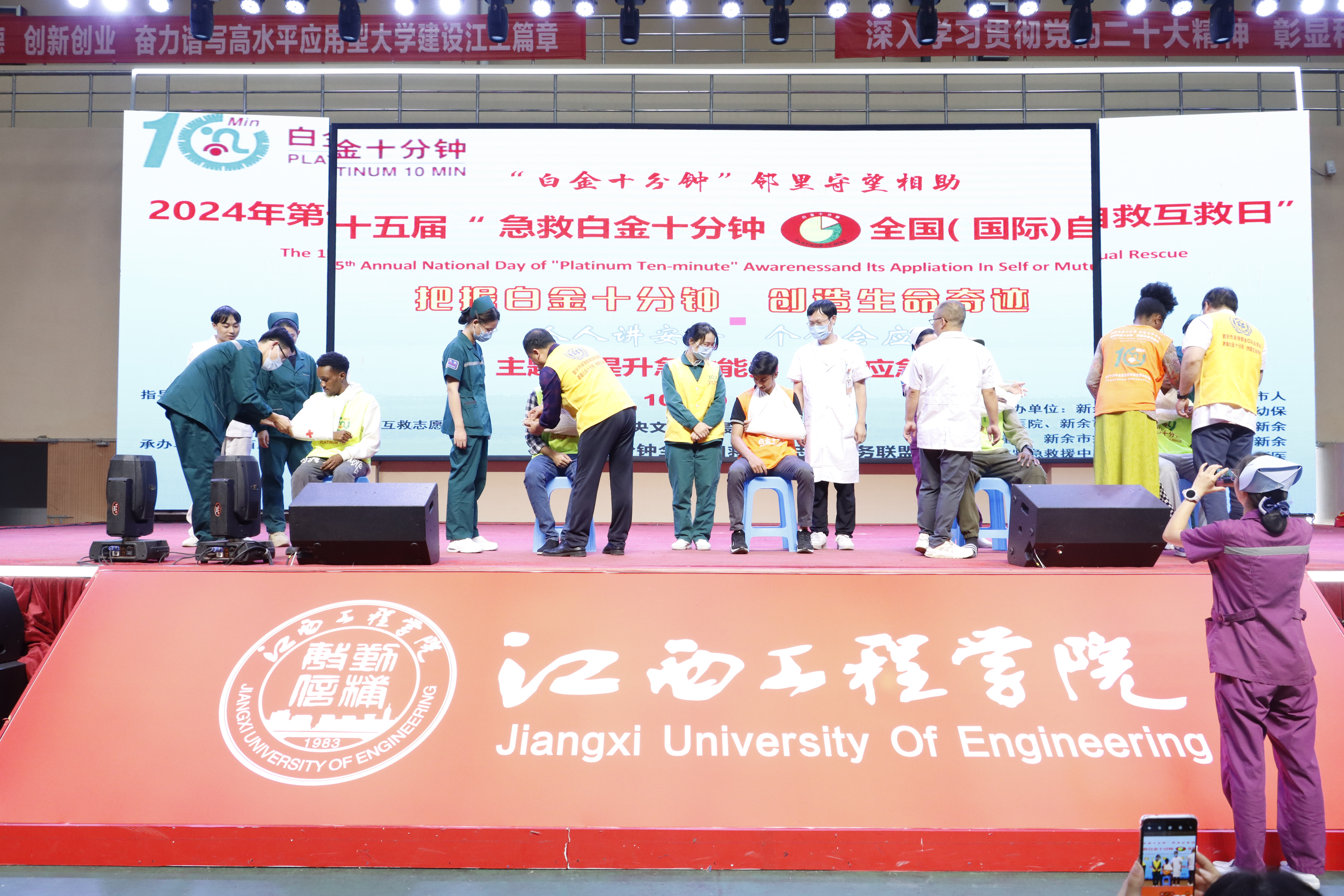 此次活动由白金十分钟全国自救互救志愿服务联盟和北京白金十分钟时效应急技术研究院主办,江西工程学院承办,新余市红十字会、新余市人民医院等10余个单位协办。