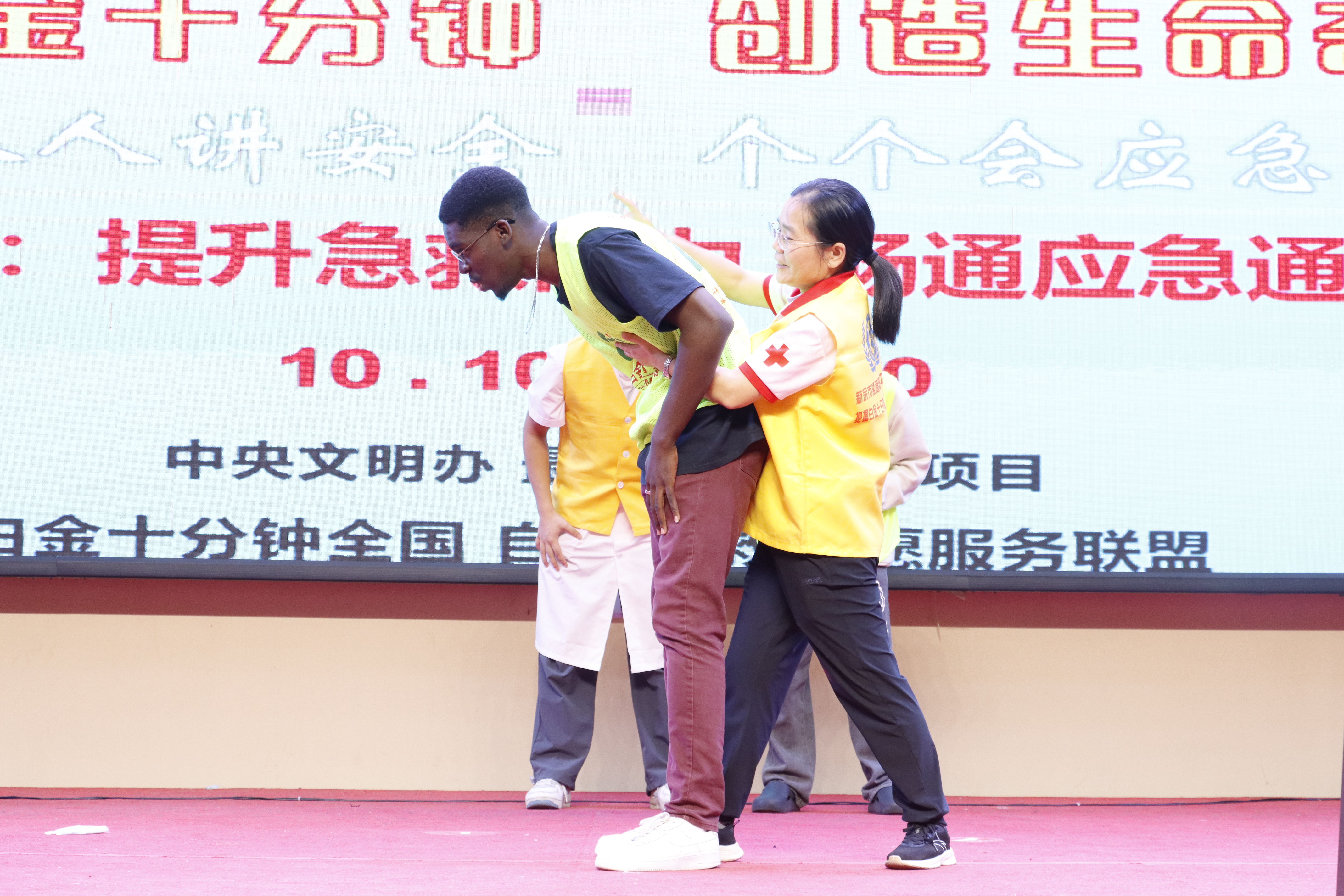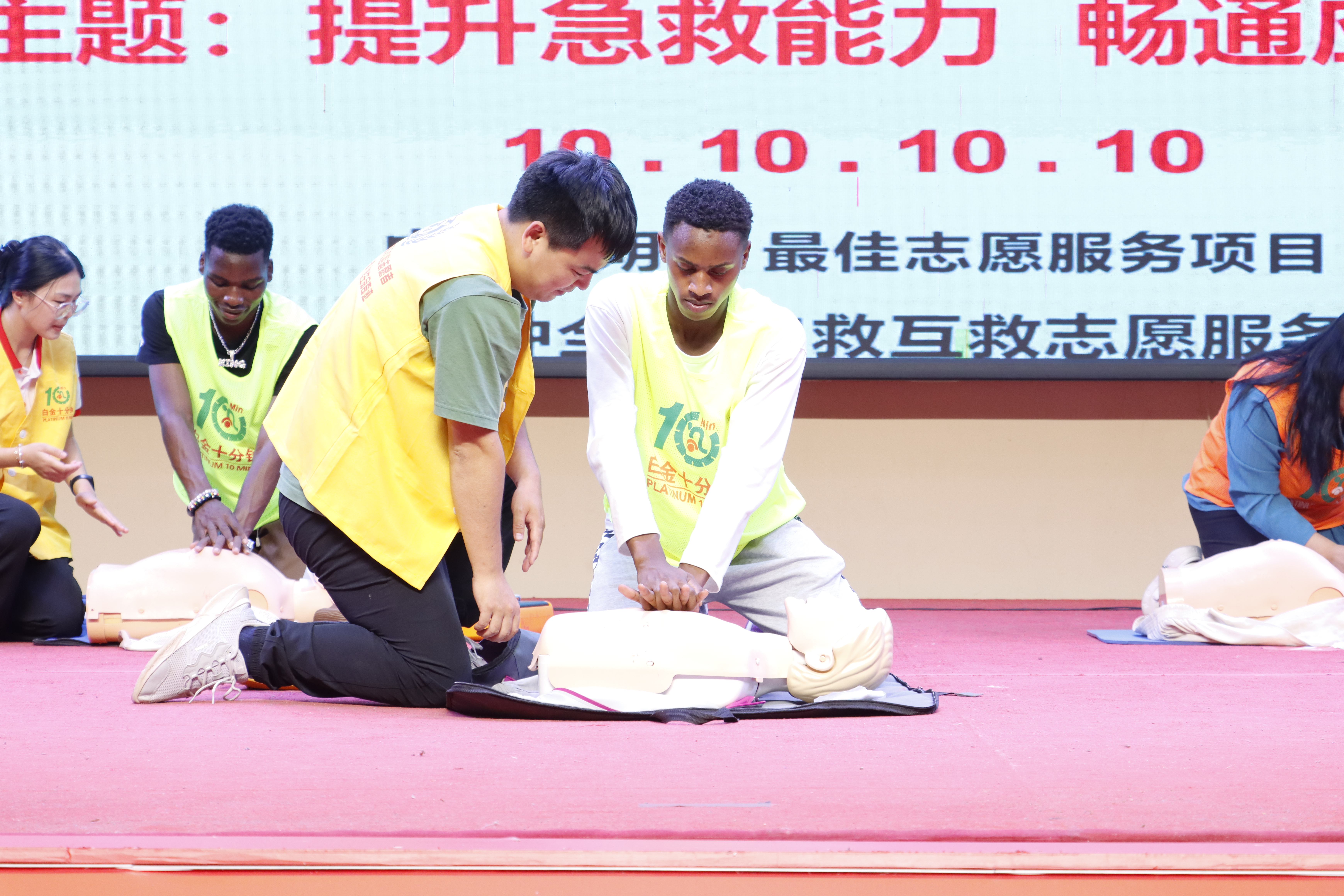 此次互动体验环节,学生积极参与。现场有江西工程学院40名海外留学生积极参与,认真观看急救技能演示,并在专家指导下进行实践操作,掌握了基本的急救技能,深刻体会到急救工作的重要性和紧迫性。在自救互救技术台下传授环节,师生们认真参与学习心肺复苏 + AED 组、海姆立克手法(气管异物解除)组、徒手止血包扎组等演示及演练,大家感受到收获满满。