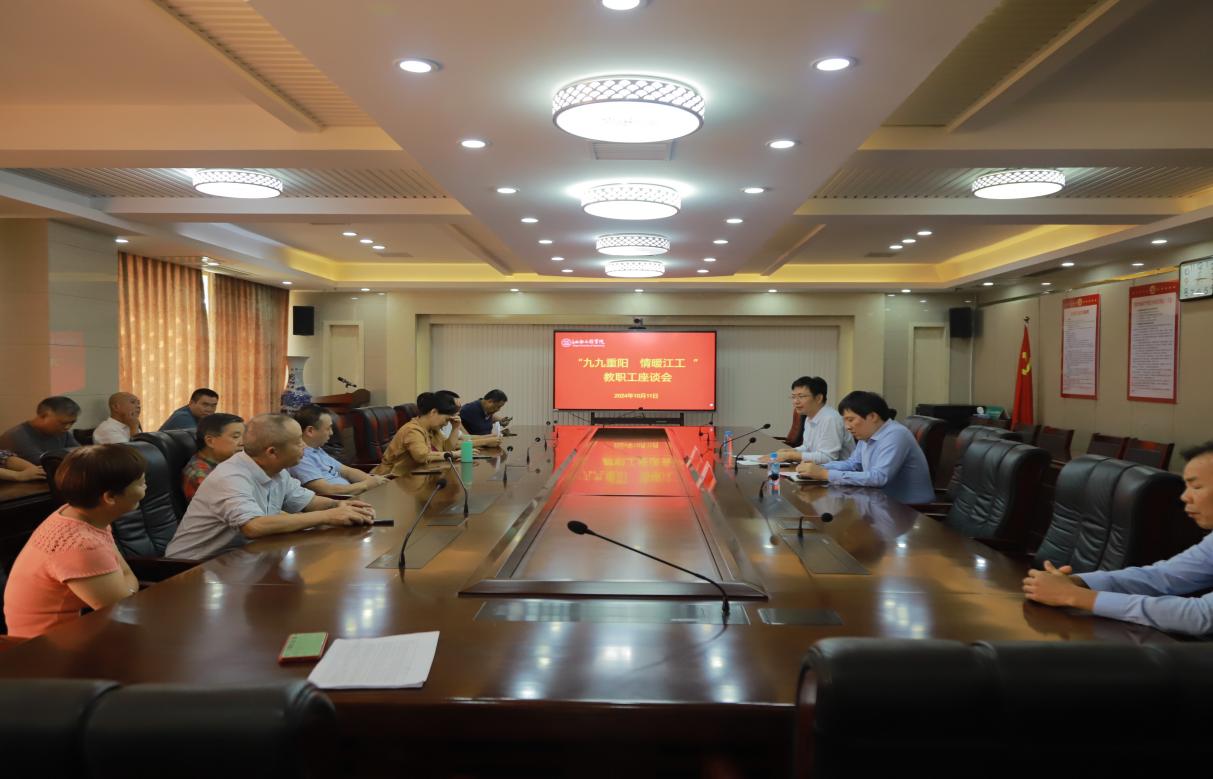 金秋十月,丹桂飘香,又是一年重阳至。10月11日,学校在天工校区行政楼七楼召开“九九重阳 情暖江工”教职工座谈会。校党委副书记、副校长冯赟,党委委员、副校长黄海军出席座谈会,旨在表达学校对老一辈教育工作者辛勤耕耘与无私奉献的崇高敬意。