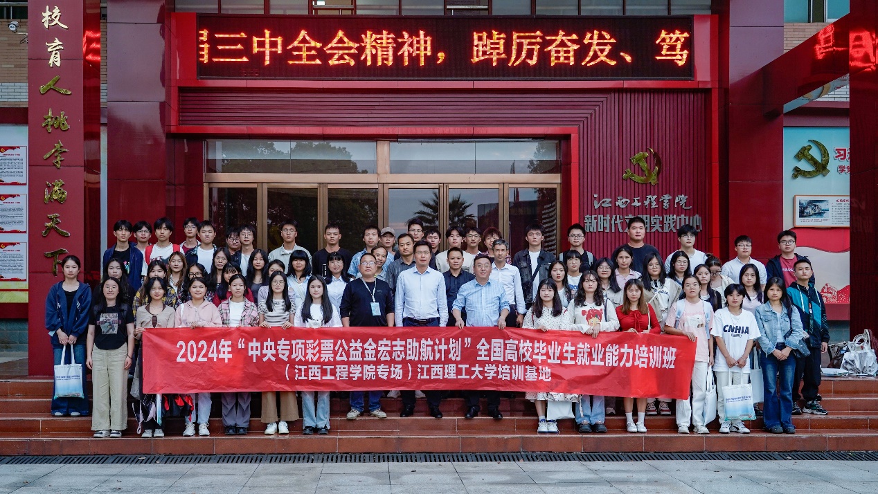 为贯彻落实党中央、国务院“稳就业”“保就业”决策部署,帮助重点群体毕业生增强求职信心,提升就业竞争力,在江西理工大学培训基地的指导下,10月8日至12日,学校在天工校区A栋104智慧教室举办2024年“中央专项彩票公益金宏志助航计划”江西工程学院2025届毕业生就业能力培训班,全校9个学院的56名学员圆满完成所有培训课程顺利结业。培训首日,党委副书记、副校长冯赟出席活动,培训结束后,冯赟与全体参训学员、培训教师合影留念。