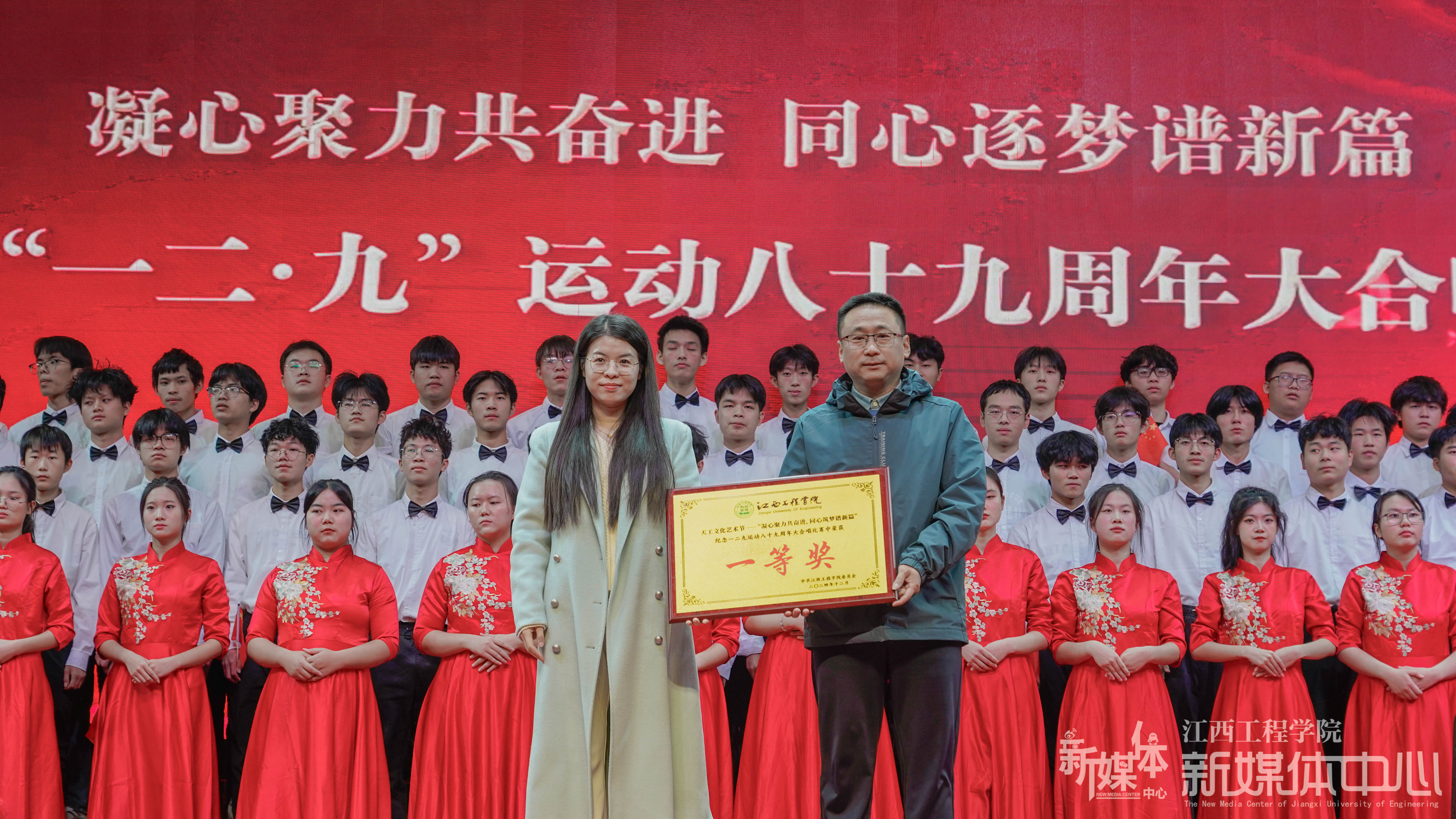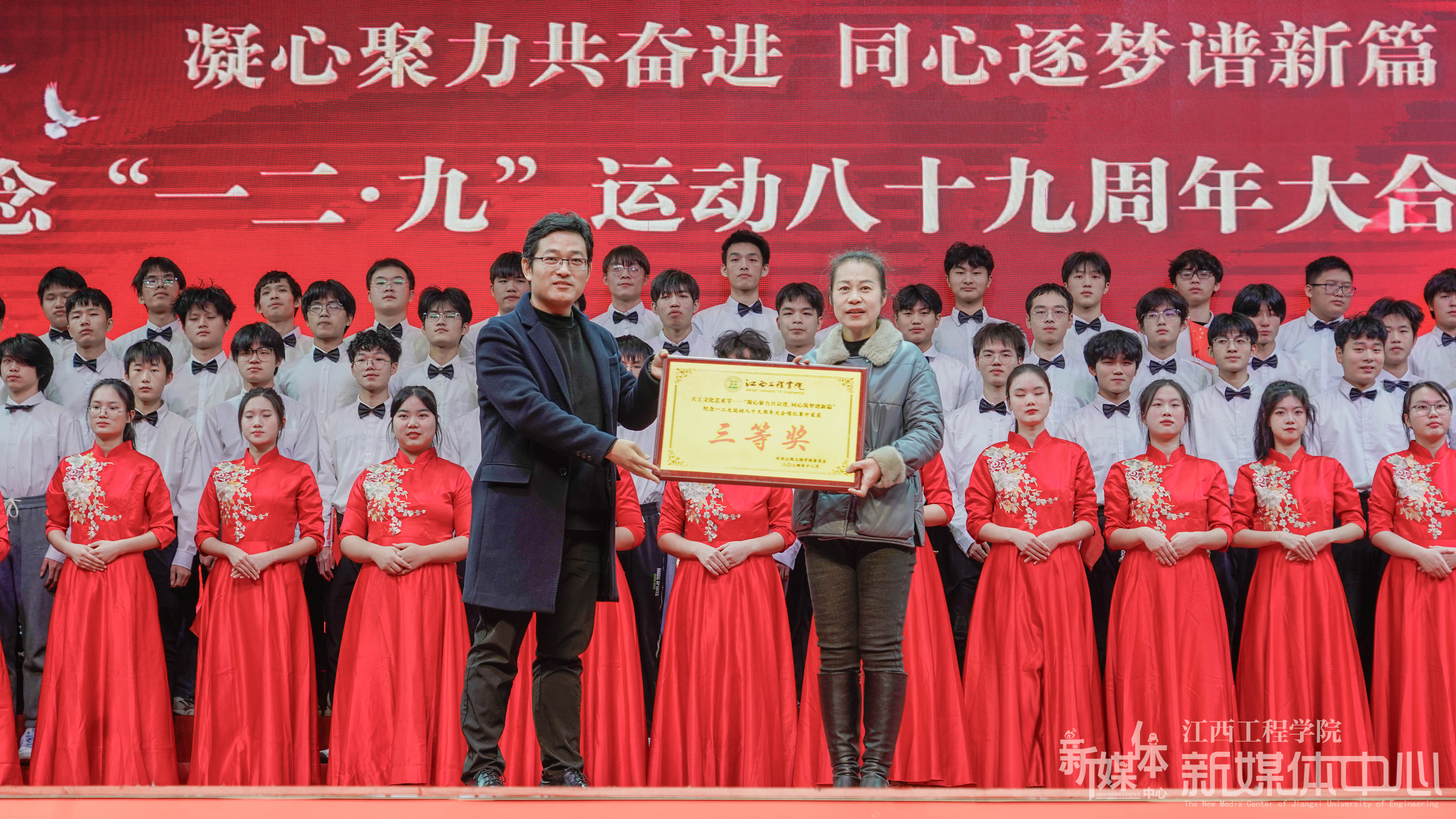 12月8日晚19:00,江西工程学院“凝心聚力共奋进 同心逐梦谱新篇”纪念“一二·九”运动八十九周年大合唱比赛在天工校区体育馆成功举办。共青团新余市委副书记胡玉菲,市委宣传部办公室负责人廖小伟,市委网信中心综合协调科科长、中国音乐家协会会员、新余市音乐家协会副主席李帅,校党委副书记、副校长冯赟出席了本次活动。天工校区各二级学院师生代表一同观看了本次比赛。