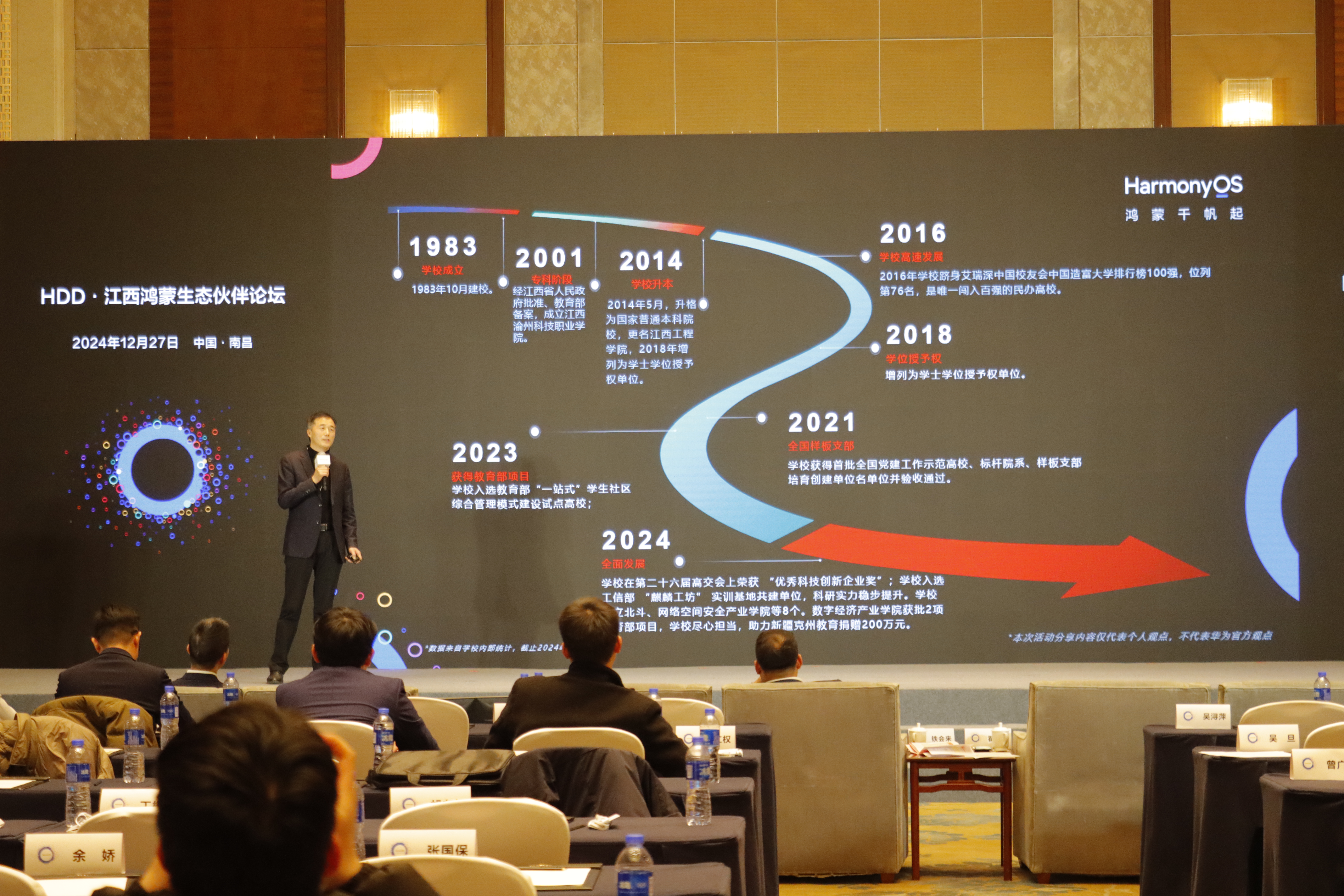 江西工程学院党委委员、副校长沈良代表学校登台见证开幕式,并发表了题为“江西工程学院鸿蒙生态伙伴案例分享”的精彩典型发言。他详细阐述了学校携手华为公司缔造的一系列丰硕成果,同时深入介绍江西工程学院的基本概况、智慧校园App鸿蒙版的创新亮点,以及鸿蒙原生应用的周密开展计划。