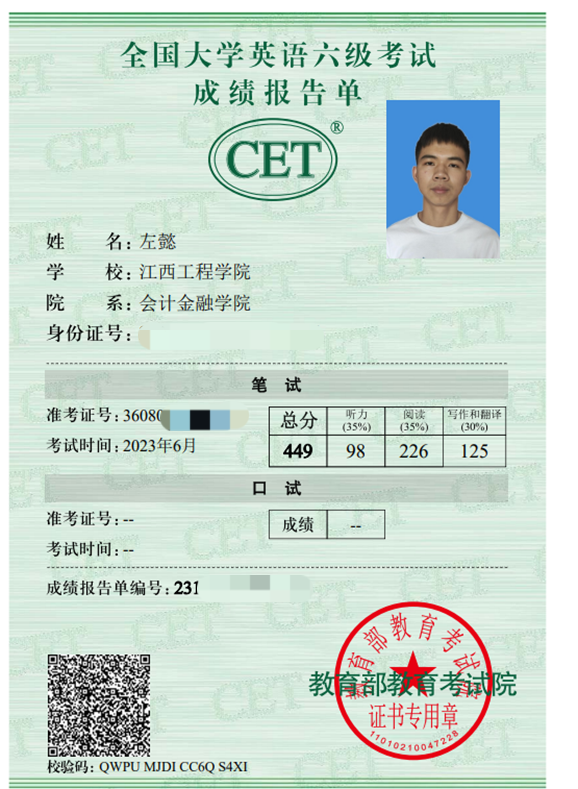 大学成长,全面提升。大学四年,他在学业、技能和实践方面全面发展。通过英语四六级考试,为学术研究和交流奠基;考取计算机二MSoffice和python编程证书,提升数字化技能;获得导游资格证和银行从业资格证,锻炼沟通协调能力;凭借努力荣获天工奖学金一等奖和院级三好学生称号;积极参与社团和社会实践,培养团队合作与领导力。他表示:“这些证书的获得,不仅拓宽了我的职业道路,更让我在实践中锻炼了自己的沟通协调能力和解决问题的能力。”