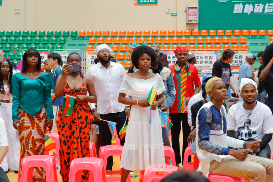 随后的文艺汇演将活动推向高潮。来自非洲的留学生们首先带来了热情奔放的《非洲民族舞蹈》舞蹈表演,充满感染力的节奏瞬间点燃了现场气氛。巴基斯坦学生表演的民族舞蹈展现了独特的异域风情,而中国学生演绎的汉服秀则完美诠释了中华传统服饰之美。特别值得一提的是,由尼日利亚学生带来的双语曲《红尘客栈》和《治愈世界》,以其真挚的情感和动人的旋律,引发了全场观众的共鸣。