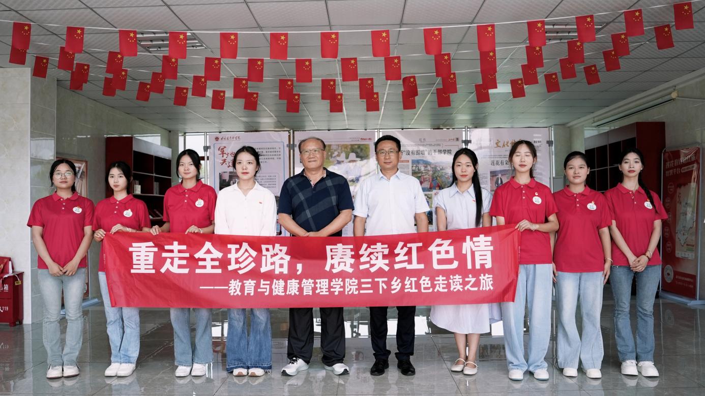 在纪念中国人民抗日战争暨世界反法西斯战争胜利80周年之际,深刻领悟红色精神、传承红色基因,成为新时代青年的重要使命。7月4日-6日,学校教育与健康管理学院“智教全珍社会实践队”在马克思主义学院教师龚丽、兰洋洋的带领下,走进萍乡市莲花县沿背村——甘祖昌将军与龚全珍老阿姨的故土,开展“追寻红色足迹·践行青春使命”主题红色走读活动。青年学子们通过实地探访、情景宣讲、校地联动,以田野为课堂、以历史为教材,将红色走读深度融入江西省“大思政课”实践教学体系,在行走中感悟“红色基因就是要传承”的深刻内涵,在这片浸润着崇高信仰的土地上,汲取精神养分,书写新时代的青春答卷。
