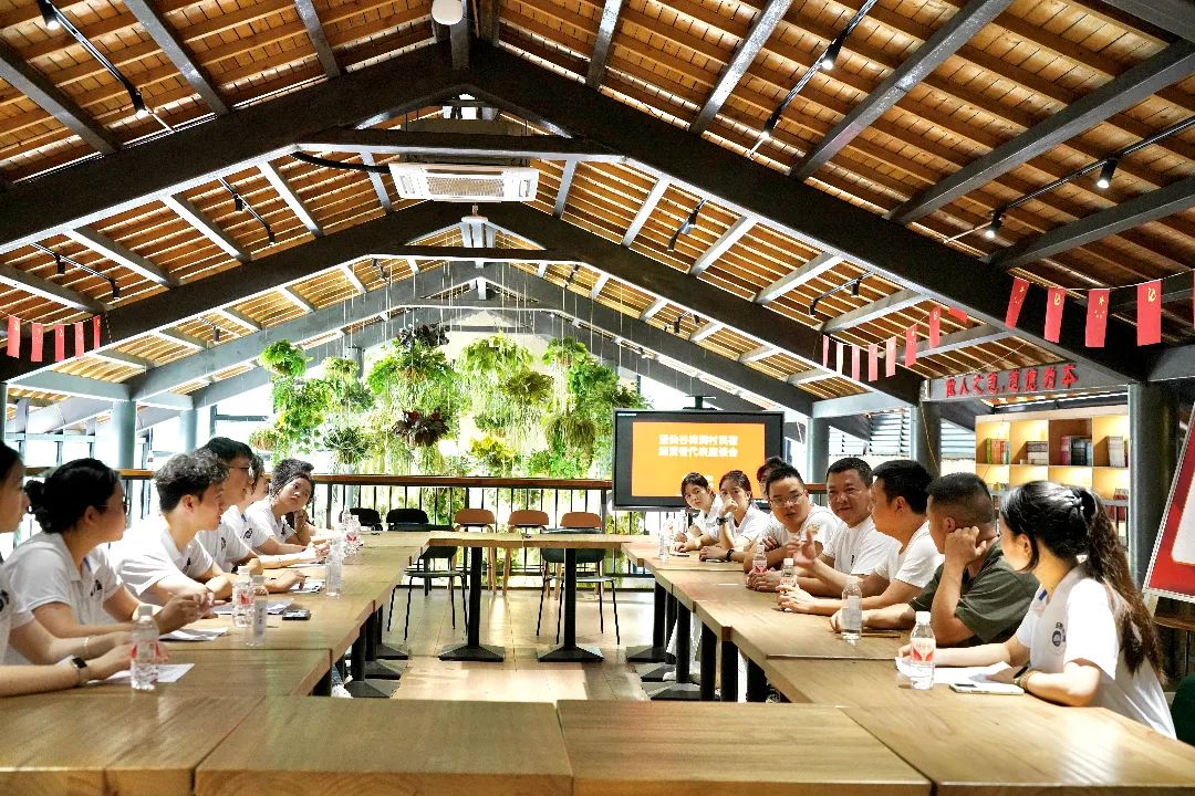 “我们一直秉持着国家乡村振兴的思路,文化振兴,其实就是挖掘在地的文化。站在屋顶上,可以看到北边是樟涧河,南边是望仙谷。做民宿产业时就想到了‘长河落日圆’‘望仙山驻足,乃见仙谷出尘’。”在座谈会上,樟涧村村委会广信区政协委员徐纲瑶详细介绍了樟涧村民宿产业的发展历程与政策支持情况。