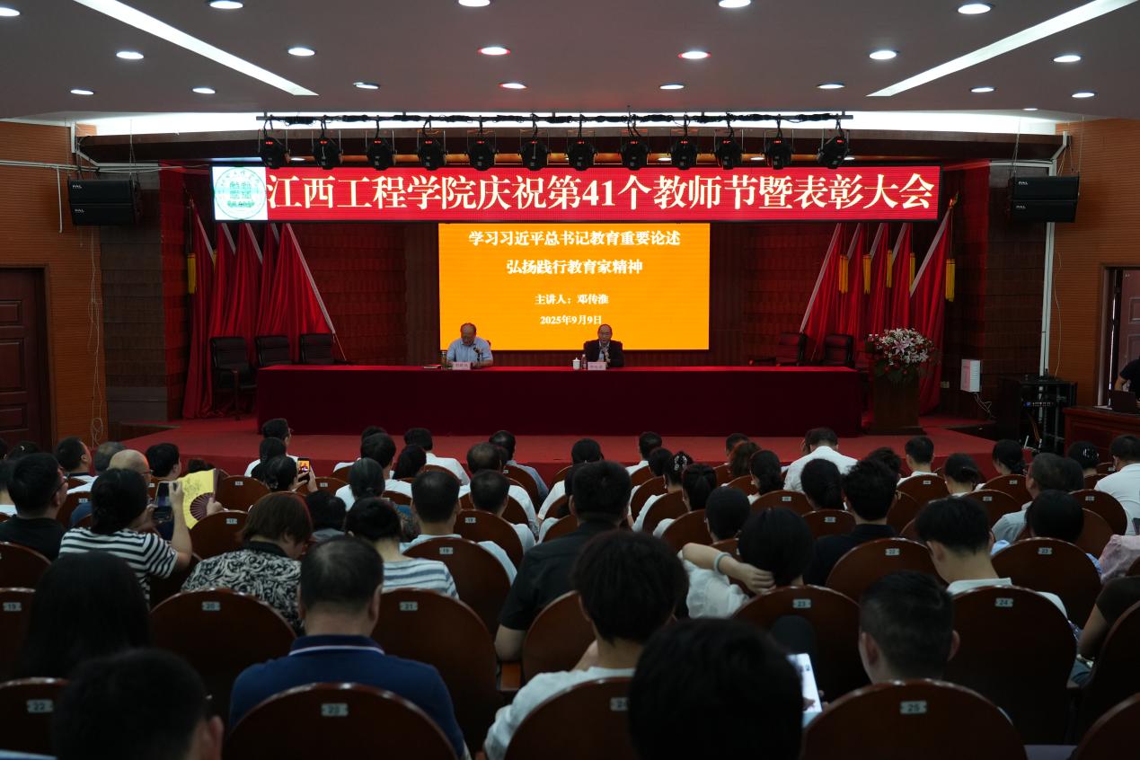 为全面贯彻全国教育大会精神,落实教育强国建设规划纲要,以教育家精神强师铸魂,激发教师创新创造活力,建优教师队伍,9月9日下午,江西工程学院隆重举行庆祝第41个教师节暨表彰大会,师生代表齐聚一堂,共同见证受表彰教师荣光时刻,进一步强化使命担当,凝聚奋进合力。