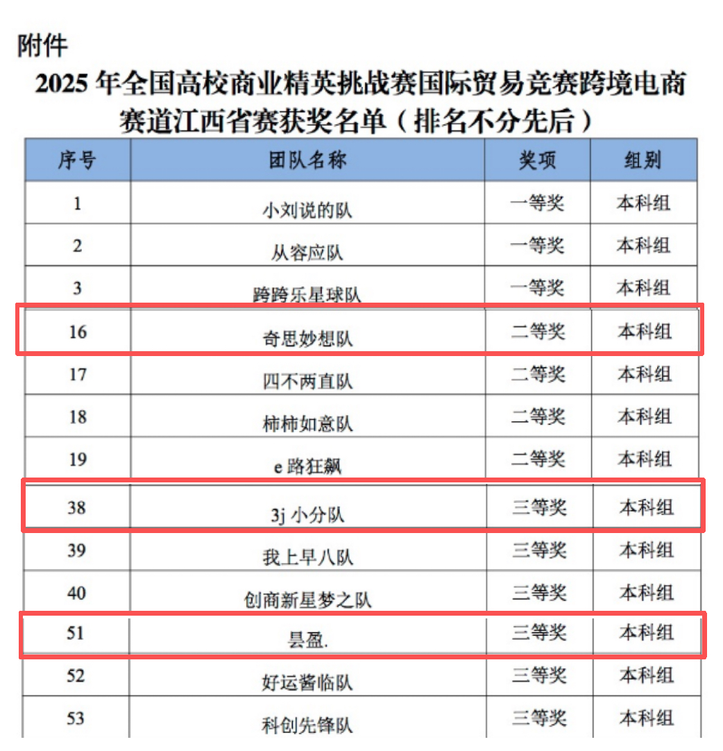 2025年10月11日,由中国国际贸易促进委员会商业行业委员会、中国国际商会商业行业商会、中国商业经济学会联合主办的2025年全国高校商业精英挑战赛国际贸易竞赛(跨境电商赛道)江西省赛圆满落幕。历经多轮激烈角逐,同学们凭借过硬实力脱颖而出,一举斩获省级二等奖1项、三等奖2项,并成功晋级,将代表江西工程学院出征该赛事全国总决赛,充分展现了我校学子扎实的专业功底、卓越的实践能力与高效的团队协作精神。