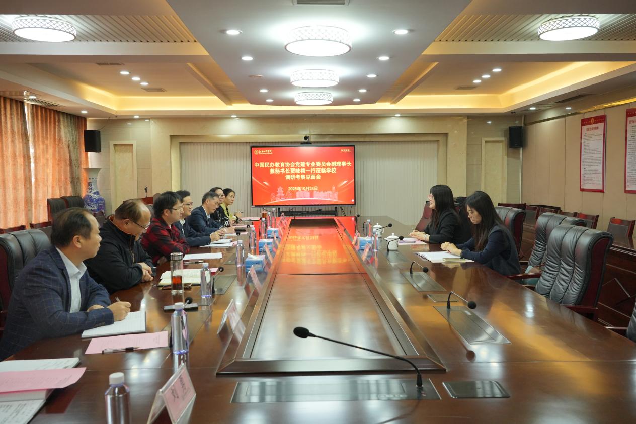 10月24日,中国民办教育协会党建专业委员会副理事长兼秘书长贾咏梅一行莅临我校,就党建与思政工作开展专题调研指导。学校理事长杨显阳,党委书记、督导专员魏建克,党委副书记、校长刘新跃,党委委员、副校长沈良出席见面会。相关职能部门负责人参加见面会,会议由刘新跃主持。