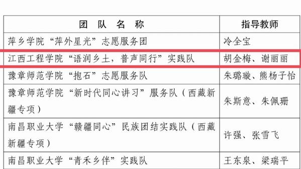 在本次表彰中,我校“语润乡土,普声同行”实践队获评优秀团队;胡金梅等3名师生获评优秀个人。近年来,我校团委坚持全面贯彻团中央和团省委对大学生暑期“三下乡”社会实践的工作部署,深刻认识其在培养学生全面发展中的重要作用。2025年7月至8月,校团委广泛动员、精心组织,共组建35支“三下乡”社会实践队,400余名师生分别赴赣州、吉安、上饶等地开展红色教育、乡村振兴、产业调研等主题实践活动,紧密围绕国家战略与地方需求,充分运用专业知识与技能开展服务。在实践过程中,师生们累计形成高质量调研报告40余篇,走读视频作品70余项,实践成果及事迹获得省级以上媒体报道100余次,取得了扎实的育人成效与社会反响。全体师生发扬“勤朴敏信”校训精神,在广阔天地中砥砺担当,奋力书写为中国式现代化贡献青春力量的崭新篇章。