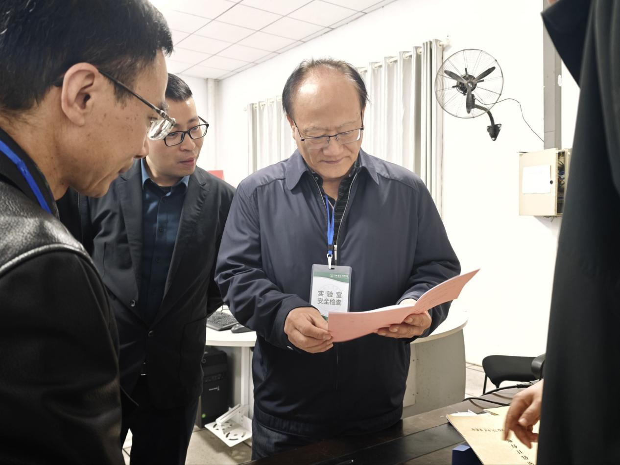 检查期间,刘新跃深入各实验室现场,与学院负责人、实验教师、安全员细致交流,逐一查看安全信息牌、应急通道、用电设备、消防器材、隐患整改台账等,对重点部位、风险点位实地查验,强调要坚决克服麻痹思想与侥幸心理,把实验室安全责任压实到岗、落实到人,做到隐患排查不留死角、整改整治不打折扣。