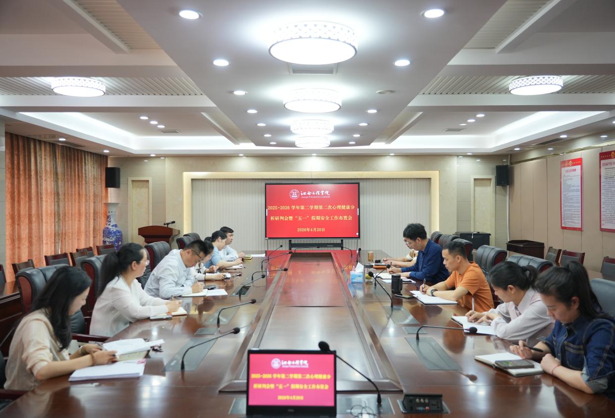 为扎实推进心理健康教育工作,科学分析研判学生心理健康状况,提升心理危机预防与干预能力,切实维护校园和谐稳定。2026年4月20日上午,江西工程学院在天工校区行政楼七楼会议室召开2025-2026学年第二学期第二次学生心理健康分析研判会,校党委副书记、副校长冯赟出席会议并讲话,学生工作处全体人员、各二级学院心理辅导站站长、副书记参加了本次会议。