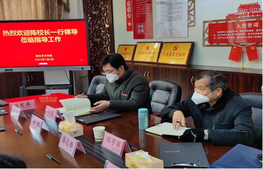 1月2日上午11点30分,校长陈学军,校党委副书记、副校长冯赟一行莅临我院调研指导工作,学院院长余旭,党总支书记张志胜,副院长张培以及党总支副书记姬赛赛和教师代表参加了此次调研座谈会。