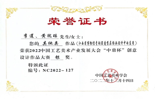 近日,由中国工艺美术学会举办的中国工艺美术产业发展大会“中鼎杯”带来喜讯,我院教师团队斩获三金两银!其中获奖老师有章裔涵、廖超萍、钱柏英、李莲。