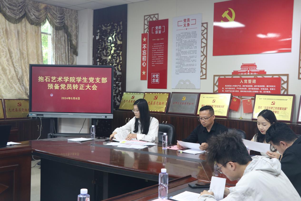为进一步推进学生党支部建设,落实党员发展计划,加强抱石艺术学院党员队伍活力,2024年5月8日下午14:30分,抱石艺术学院在艺术楼202会议室召开学生党支部预备党员转正大会。本次大会由学生党支部书叶丽主持,学院党总支书记张志胜、党总支副书记姬赛赛、申请转正17名党员及他们入党介绍人参会。