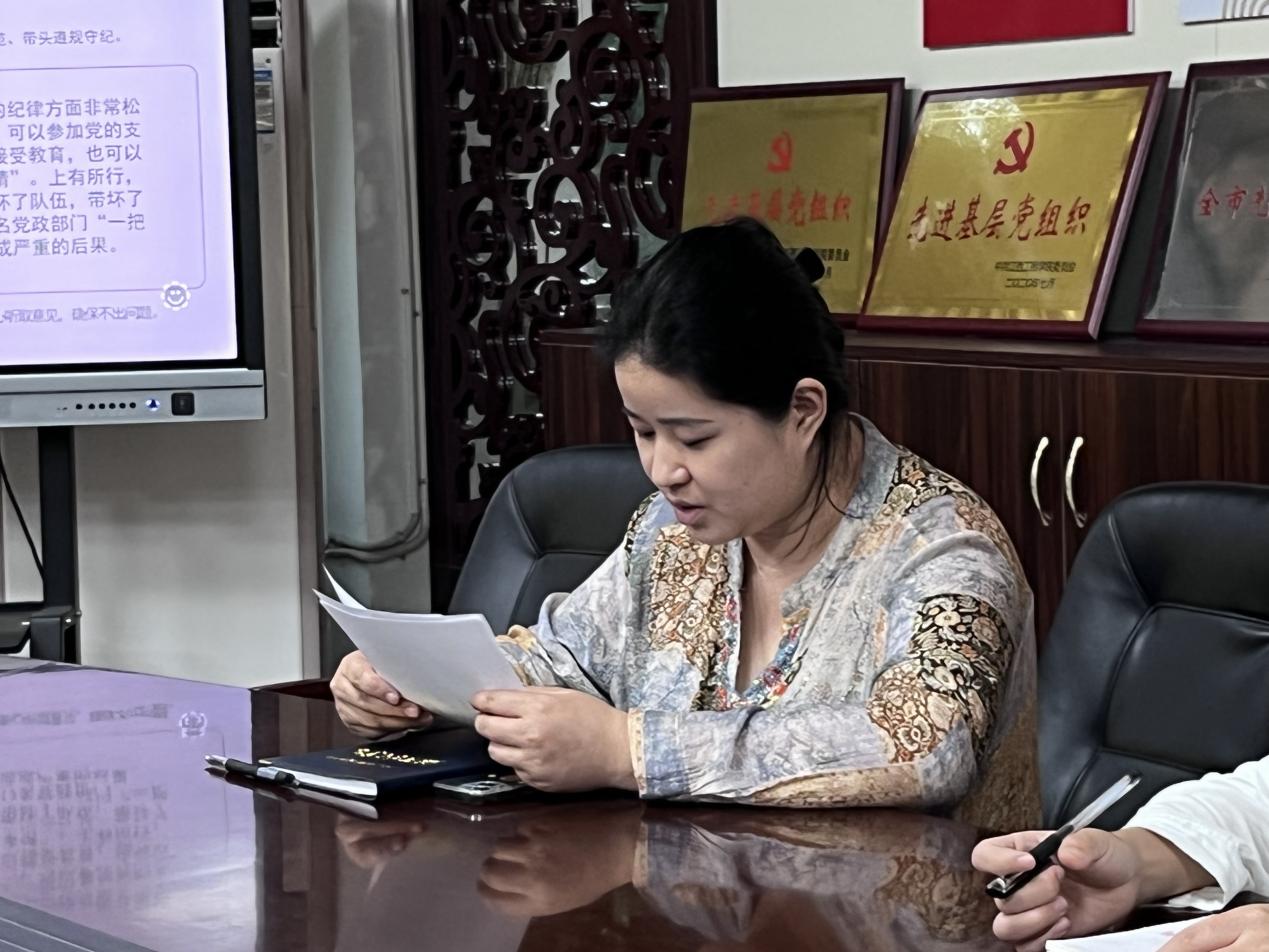 党支部书记张培同志结合习近平总书记关于加强党的纪律教育的重要论述和重要指示、开展党纪学习教育的重要意义和目标任务、新修订《条例》的重要内容和核心要义以及党员干部常患易患的违纪行为和防范措施四个方面,结合学院日常工作实际,穿插警示案例,进行了全面生动深入的讲解。她强调,支部党员教师要严格遵守“六项纪律”,通过学习党纪进一步明确日常言行的衡量标尺,校正自己的思想和行动。“人无忠信,不可立于世。”这是一名党员应有的行事准则。习近平总书记指出:衡量干部是否有理想信念,关键看是否对党忠诚。忠诚是共产党人的灵魂和基础,是党员领导干部最根本的政治品质,是必须彻底、无条件、不掺任何杂质去履行的义务,要严守党的纪律规矩,做政治上的“明白人”。