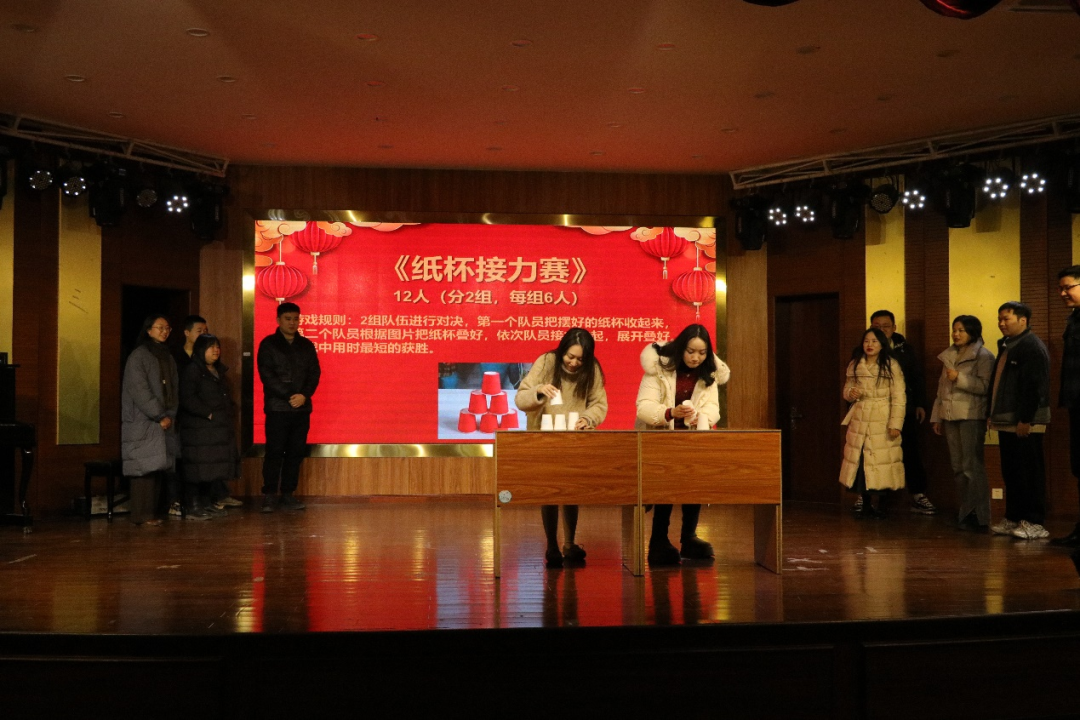 期间还有趣味十足的互动小游戏穿插其中,如纸杯接力赛、看图猜成语、手忙脚乱等,让全场笑声不断,进一步拉近了教师们的距离。