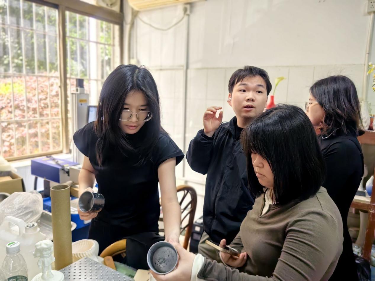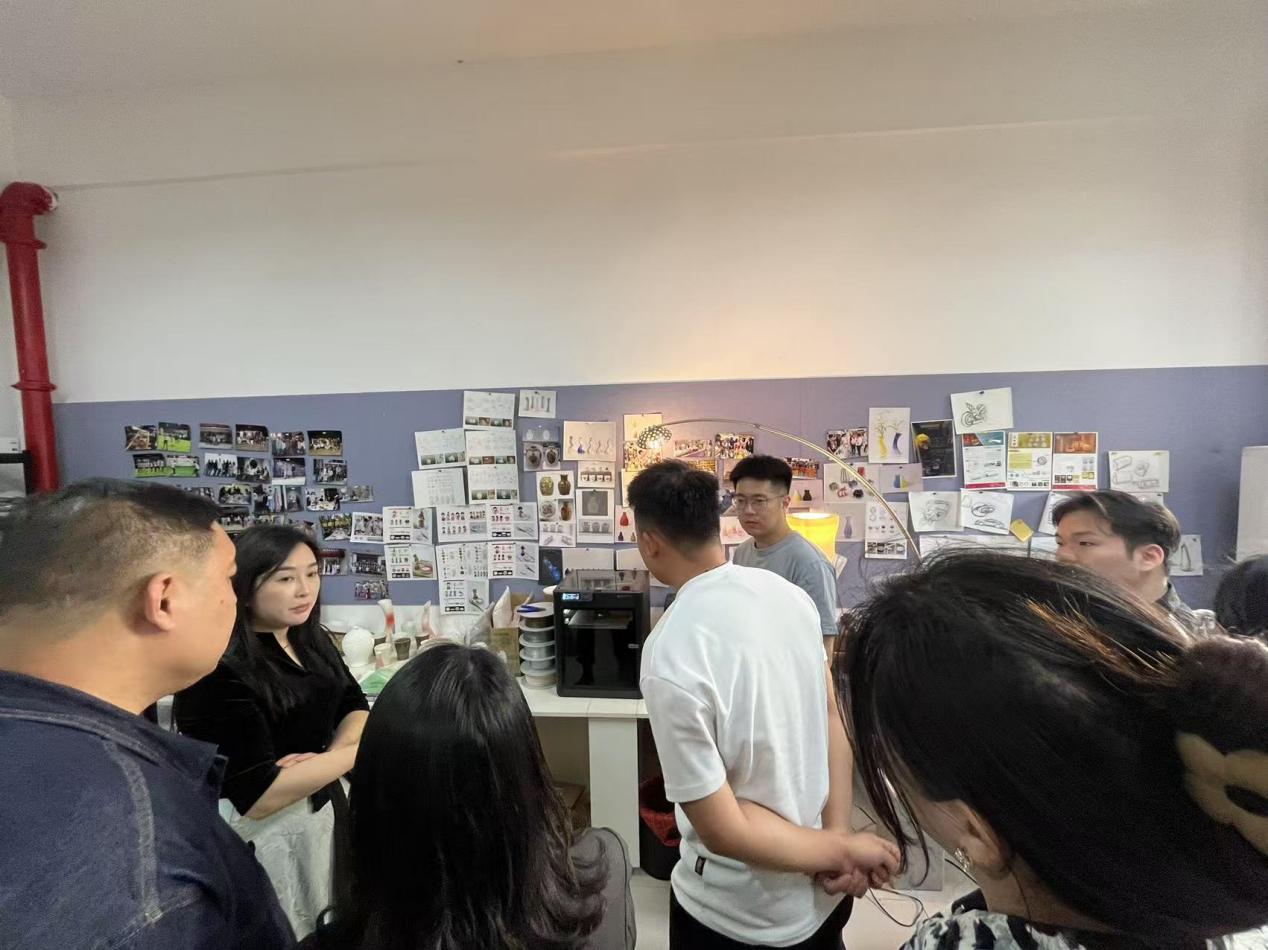 调研伊始,团队一行实地走访了“艺术+科技”数字手工艺创新平台的设计工作室与成果展厅。在工作室成员的专业讲解与悉心指导下,教师们沉浸式体验了“3D技术打印微型产品”“3D打印陶瓷模坯”“激光雕刻”三大特色项目。通过边学边做、即时互动的实践模式,团队成员不仅深入了解了各项目的操作流程,更精准把握了技术应用的核心要点,实现了理论知识与实操技能的深度融合。