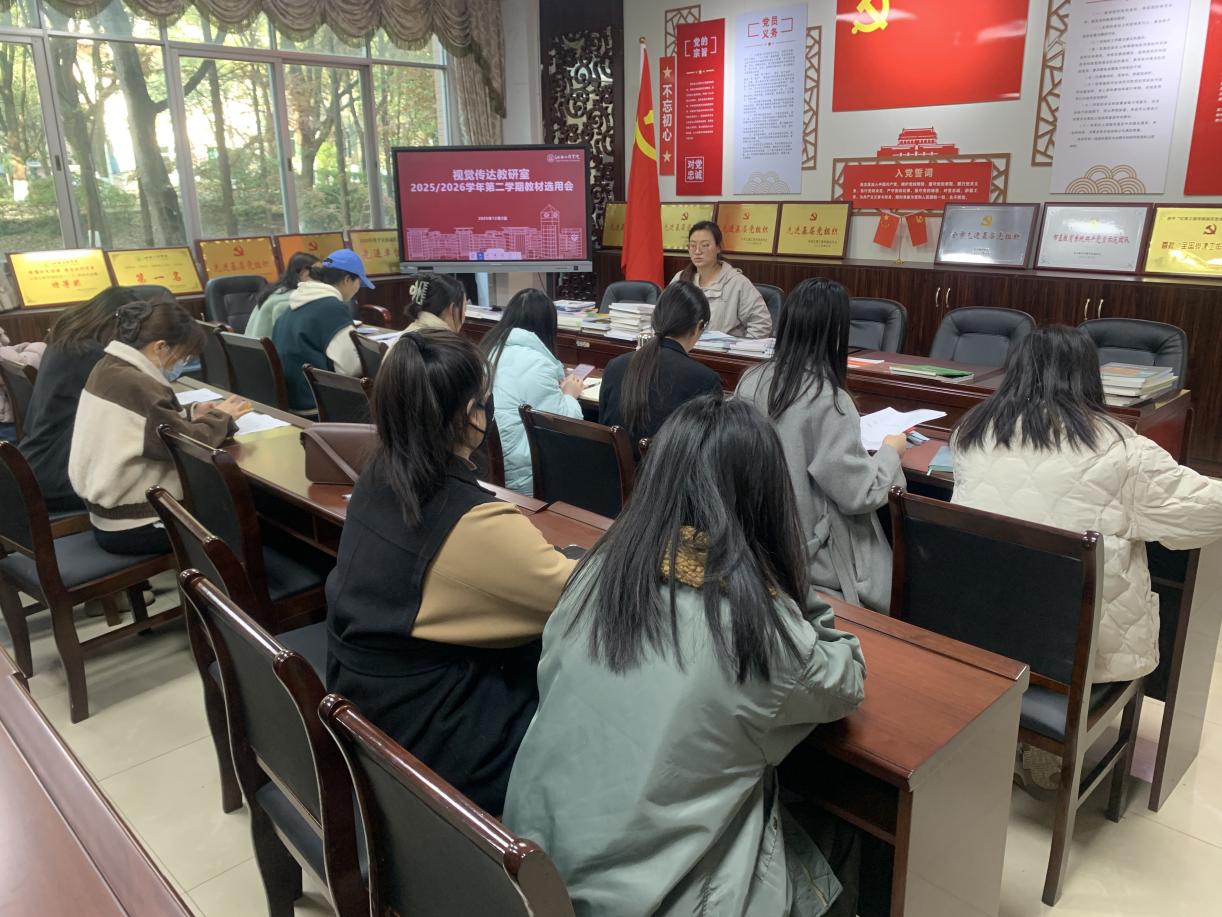 为规范教材选用,确保教材选用流程合规,信息完整,解决旧教材内容滞后、实践案例不足等问题,避免教材同质化或理论化过重,为新学期教学质量保障提供支撑,2025年12月3日下午两点,视觉传达设计教研室召开了视觉传达设计专业2025/2026学年第二学期教材选用会,会议由白小芳主任主持,教研室全体教师参会。