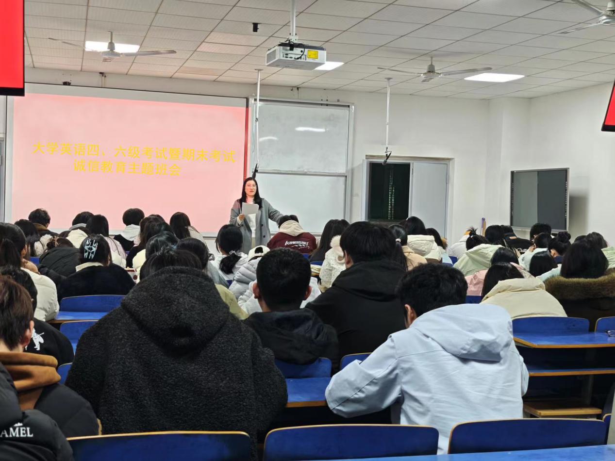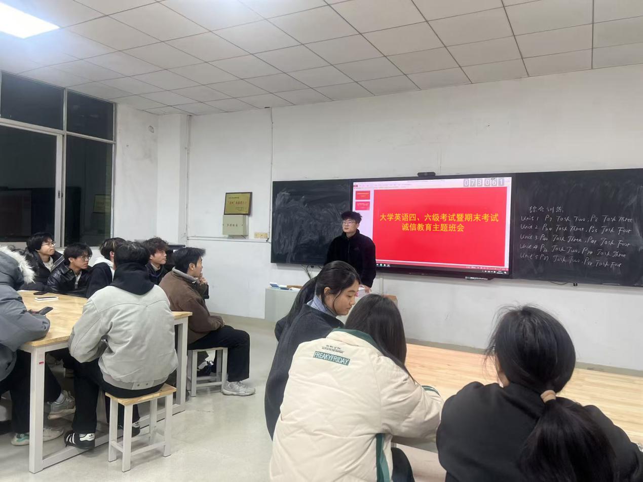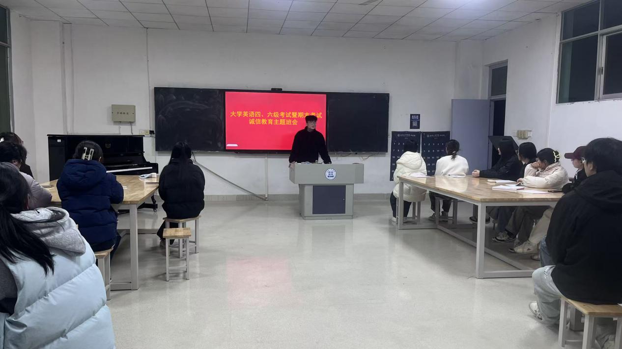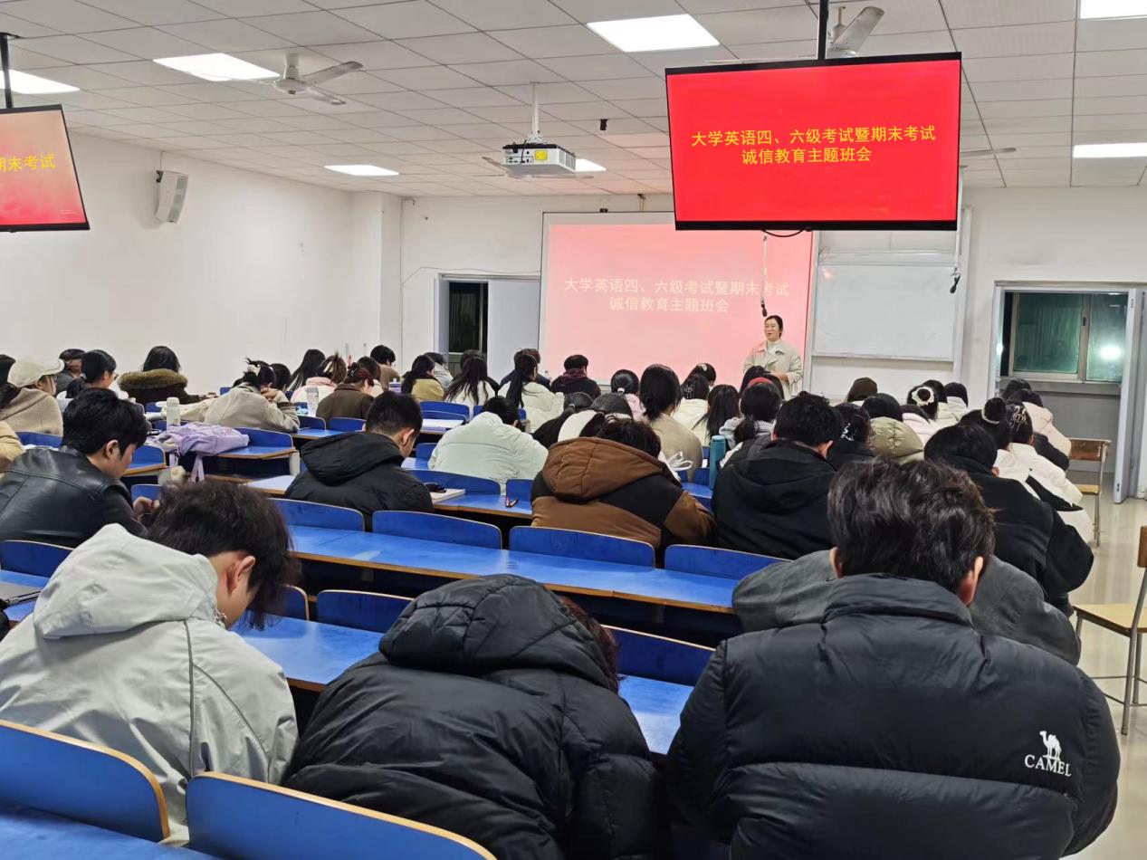 为营造公平、公正的考试环境,强化学生诚信意识,抱石艺术学院于2024年12月3日组织各班级集中开展“大学英语四、六级考试暨期末考试诚信教育”主题班会。此次活动旨在引导学生树立正确的考试观念,严肃考风考纪,为即将到来的国家级考试和学期期末考试做好思想动员与纪律教育。