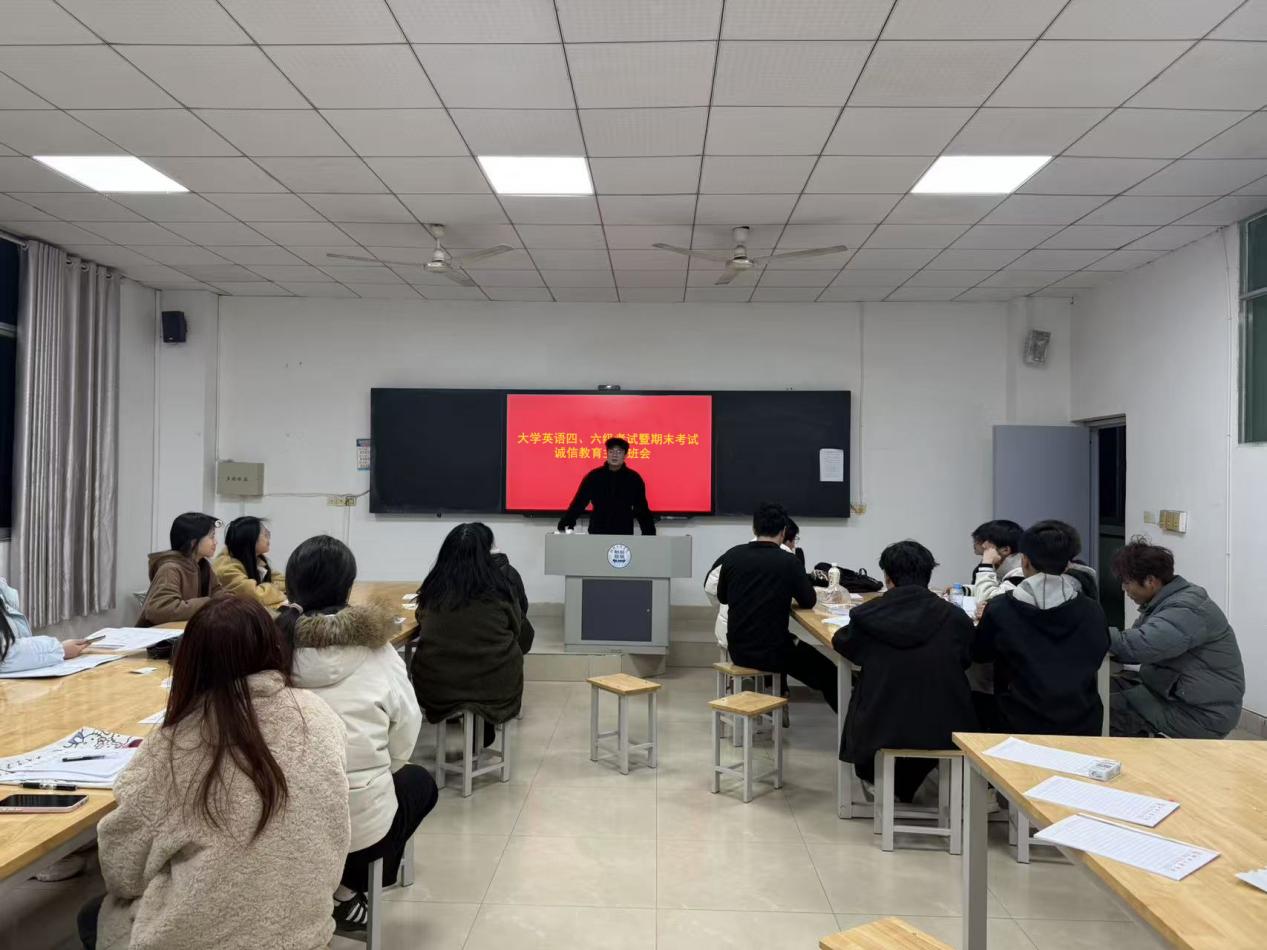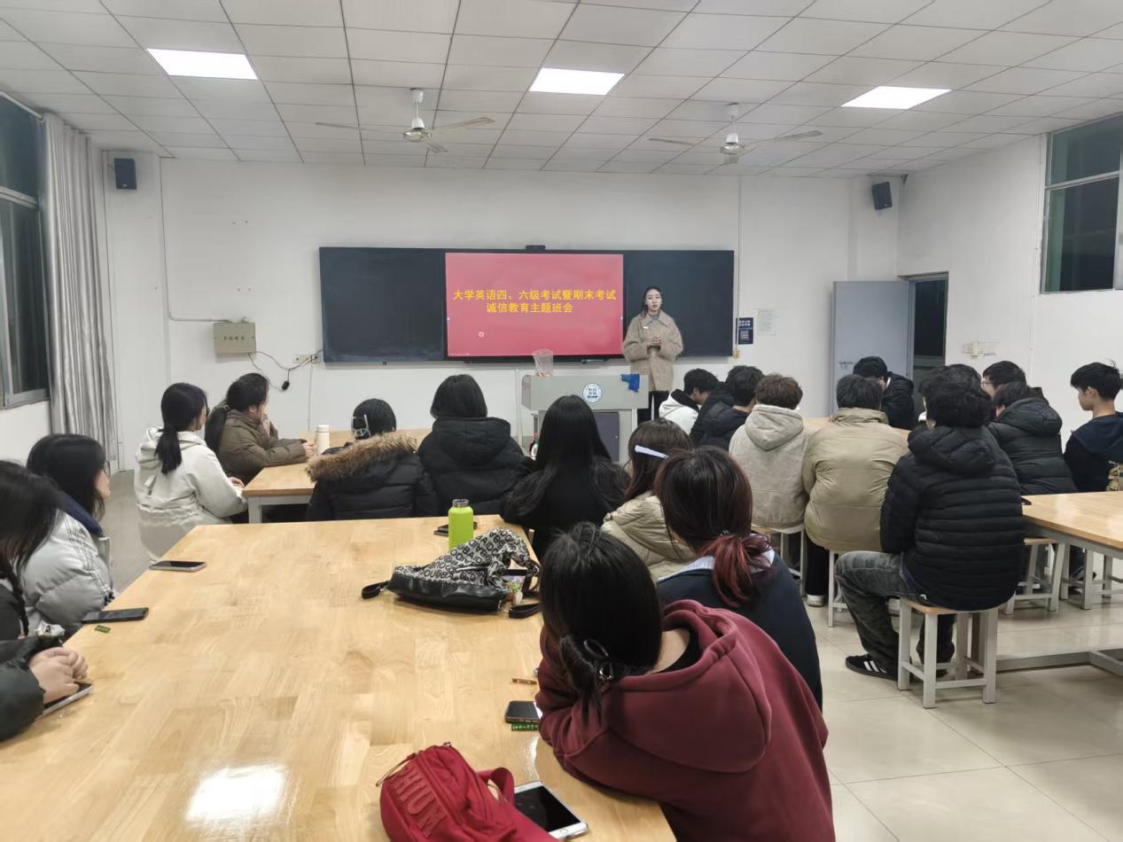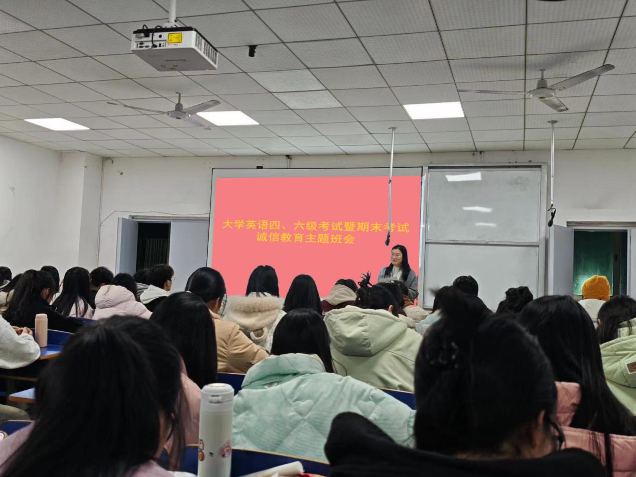 为营造公平、公正的考试环境,强化学生诚信意识,抱石艺术学院于2024年12月3日组织各班级集中开展“大学英语四、六级考试暨期末考试诚信教育”主题班会。此次活动旨在引导学生树立正确的考试观念,严肃考风考纪,为即将到来的国家级考试和学期期末考试做好思想动员与纪律教育。