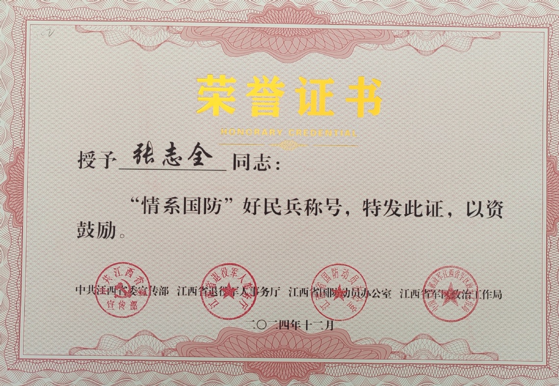 12月17日,江西省第二届“情系国防”好民兵(好预备役)、好书记发布仪式在萍乡举行,现场发布了“情系国防”好民兵、好预备役、好书记名单共计109人,并对部分获表彰人士进行颁奖。其中我校人民武装部副部长张志全入围。