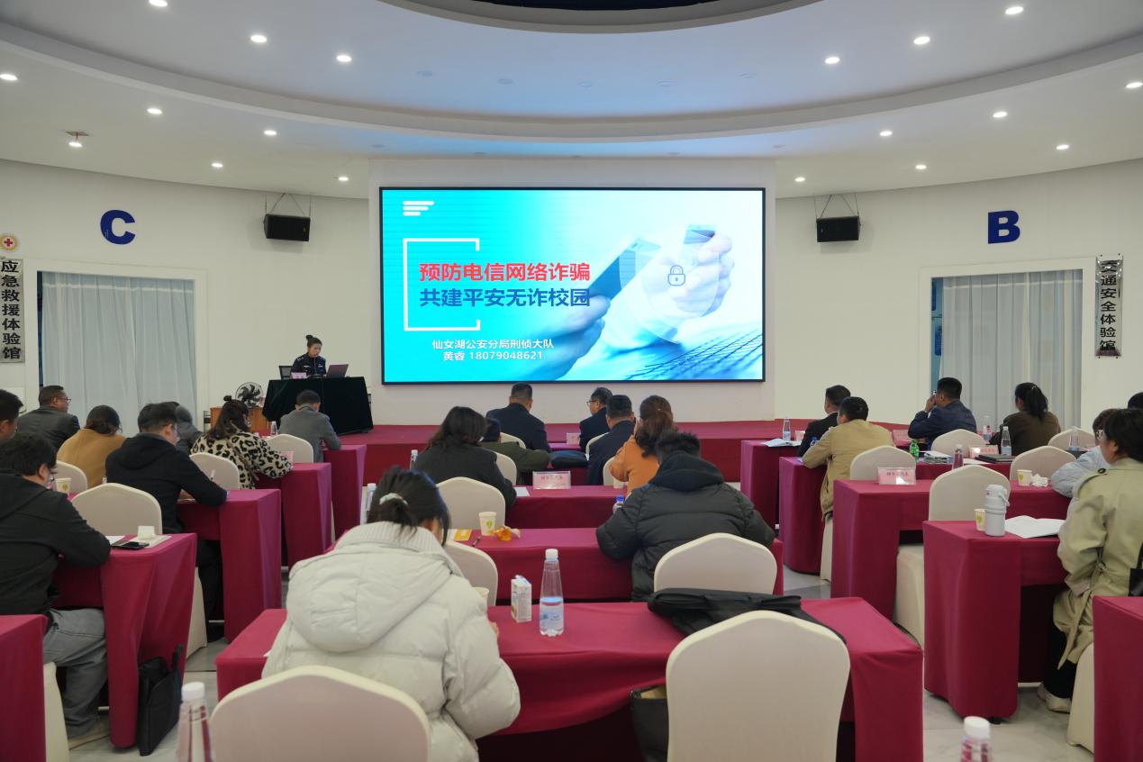仙女湖公安分局刑侦大队四级警长警官黄睿结合实际案例,深入剖析当前常见的诈骗类型、诈骗手段及诈骗特点,帮助大家全面了解诈骗犯罪的套路和危害,同时针对校园场景经常遇到的诈骗风险,通过真实案件数据和视频演示,还原了诈骗分子如何利用学生群体的心理弱点实施犯罪,并提供了实用的防范技巧和应对策略,指导大家如何识别诈骗信息、保护个人隐私和财产安全。