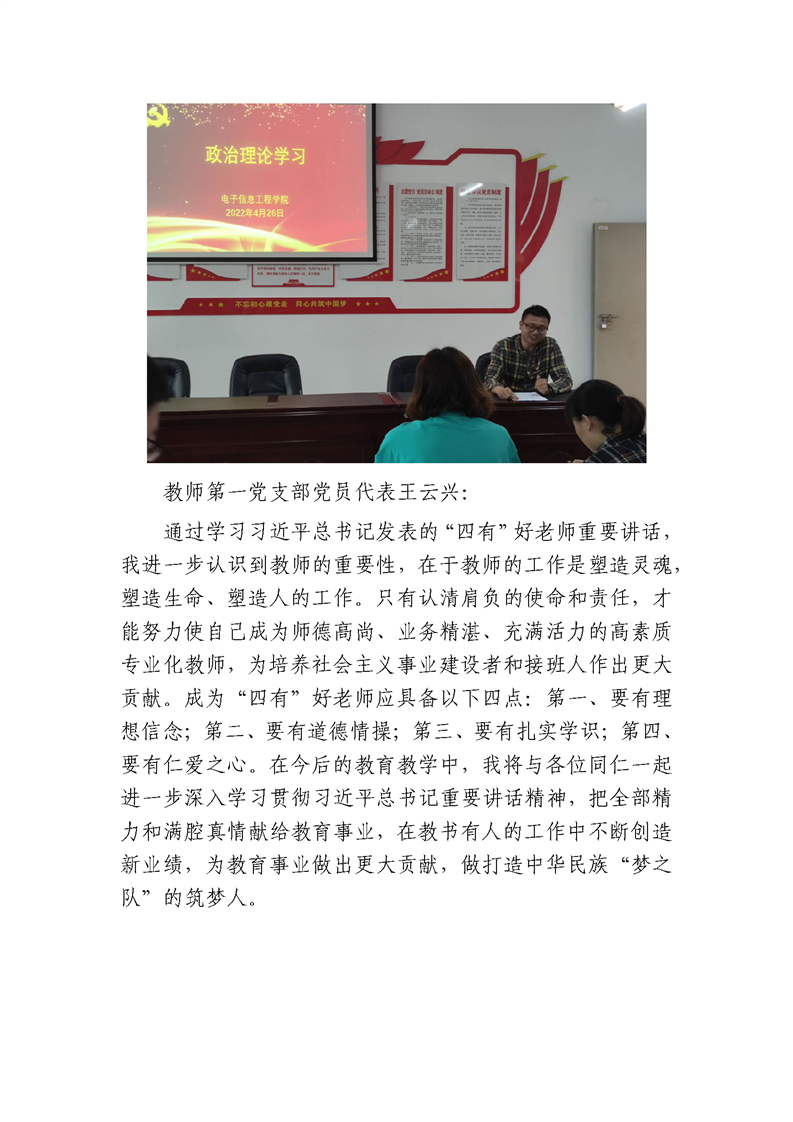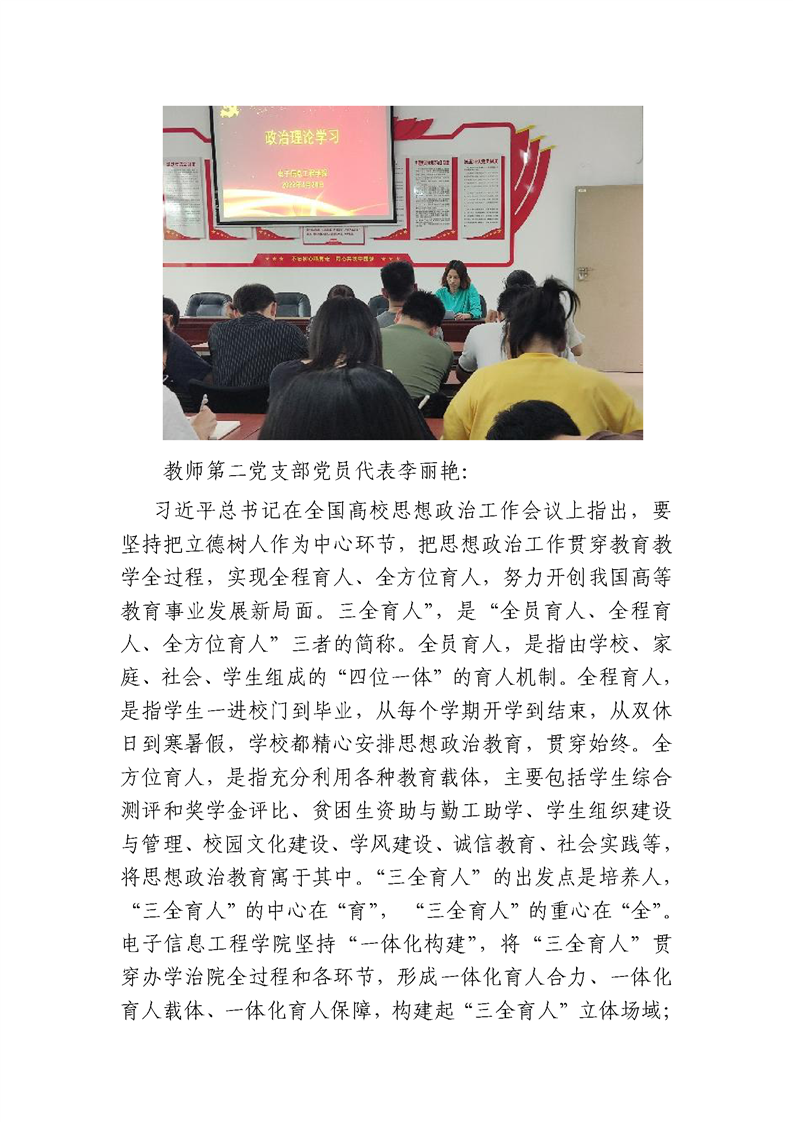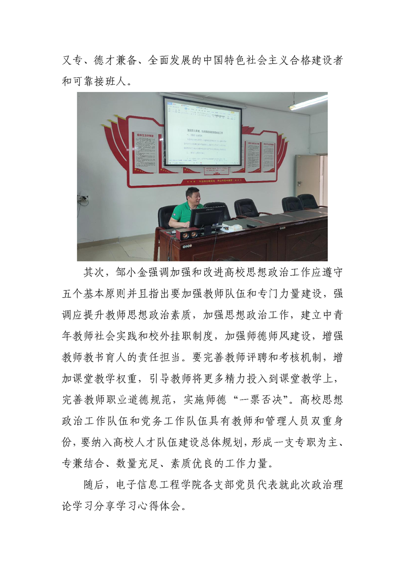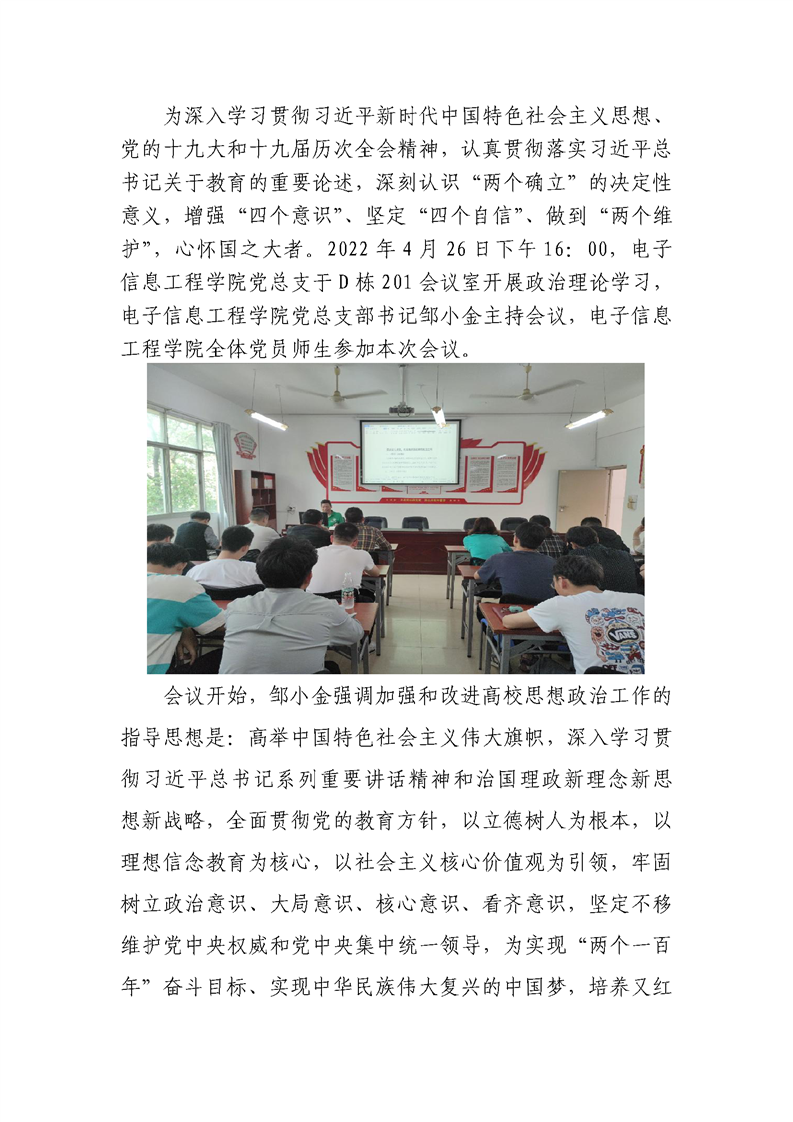 电子信息工程学院党总支组织全体党员开展政治理论学习