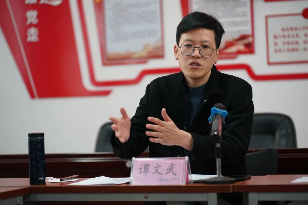 会上,谭文武对数字经济产业学院教师第一党支部2023年度专题组织生活会和民主评议党员会议的会前准备情况进行了报告,并代表党支部班子围绕主题教育开展等方面进行对照检查,检视存在的主要问题和不足,深刻剖析问题根源,明确整改措施。