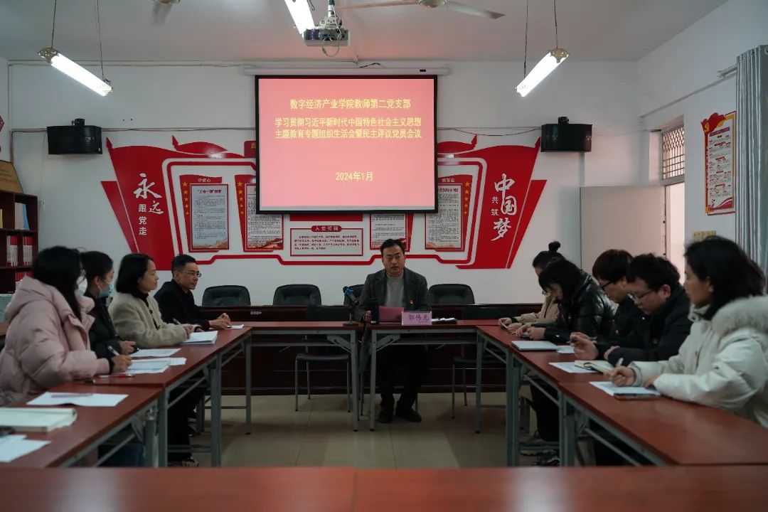 数字经济产业学院教师第二党支部2023年度专题组织生活会暨民主评议党员会议在B201会议室召开,会议由教师第二党支部书记郭伟光主持,挂点校领导刘德华、教师第二党支部全体党员以及部分党外群众代表参加。