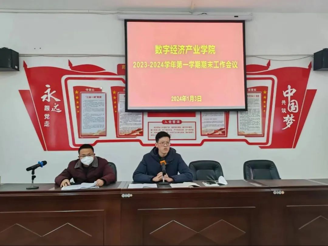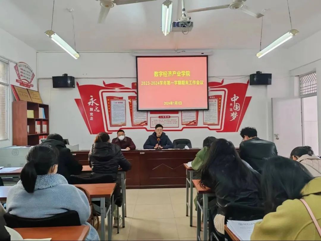 转眼间,本学期已进入尾声,为确保期末各项工作顺利开展,1月3日,数字经济产业学院在B201会议室召开2023-2024学年第一学期期末工作会议,本次会议由副院长朱伙军主持,院长谭文武、党总支书记张文凤、党总支副书记郭伟光及全体教师参加。