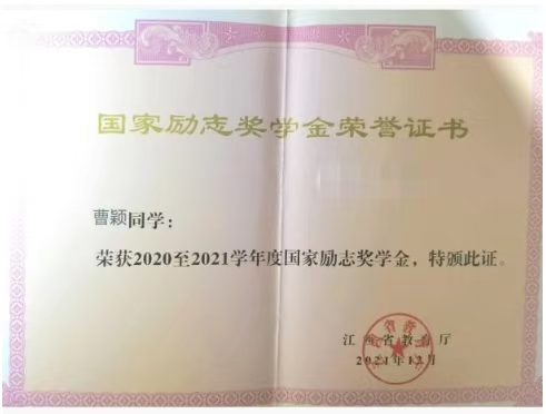 2.在2020-2021学年年度,荣获“国家励志奖学金”