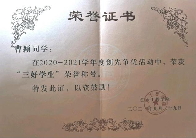 1.在2020-2021学年年度评优评先活动中,荣获“三好学生”称号