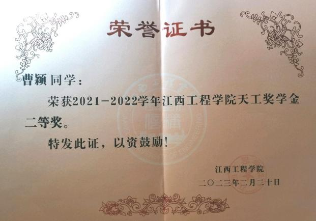 3.在2021-2022学年年度,获得天工奖学金二等奖