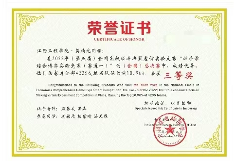 6、第五届全国高校 “经济学综合博弈实验竞赛”全国总决赛“三等奖”