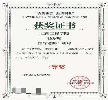 1、2022年全国大学生技术创新创业大赛江西省赛区文化教育赛道“一等奖”