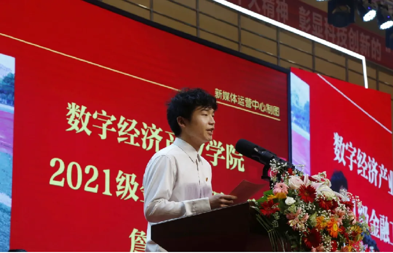 大会最后,我院学生代表2021级金融工程1班詹语凡发言。