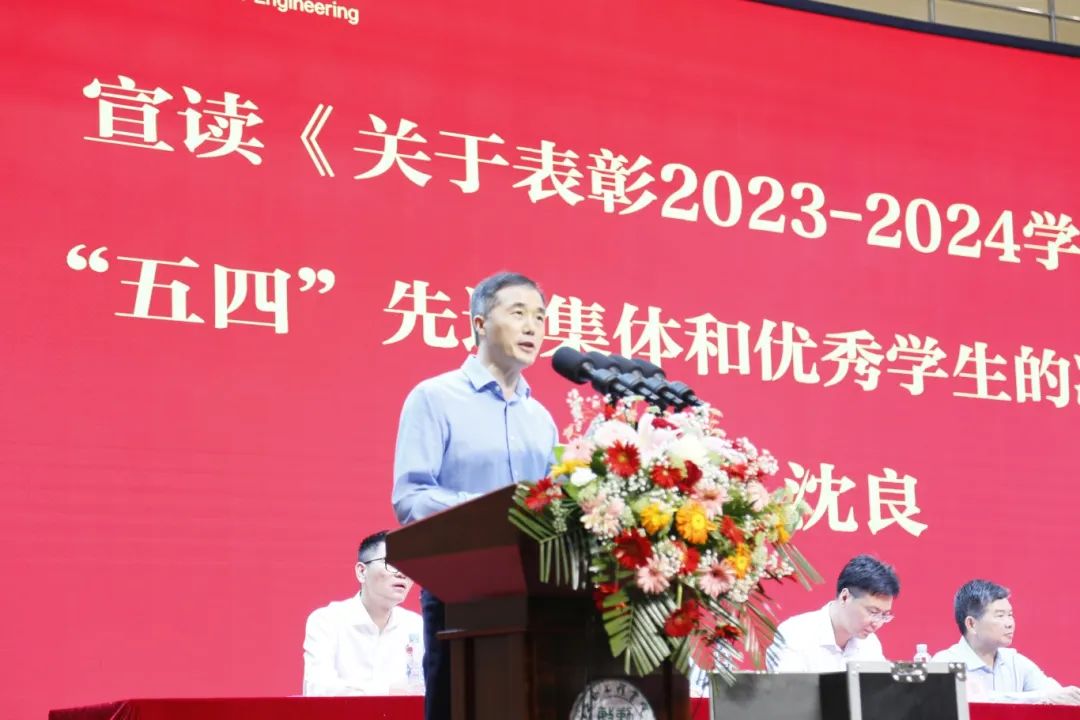 大会伊始,由副校长沈良宣读《关于表彰2023-2024学年度“五四”先进集体和优秀学生的决定》。随后,在热烈的掌声中,与会校领导为获奖集体与个人代表进行颁奖。