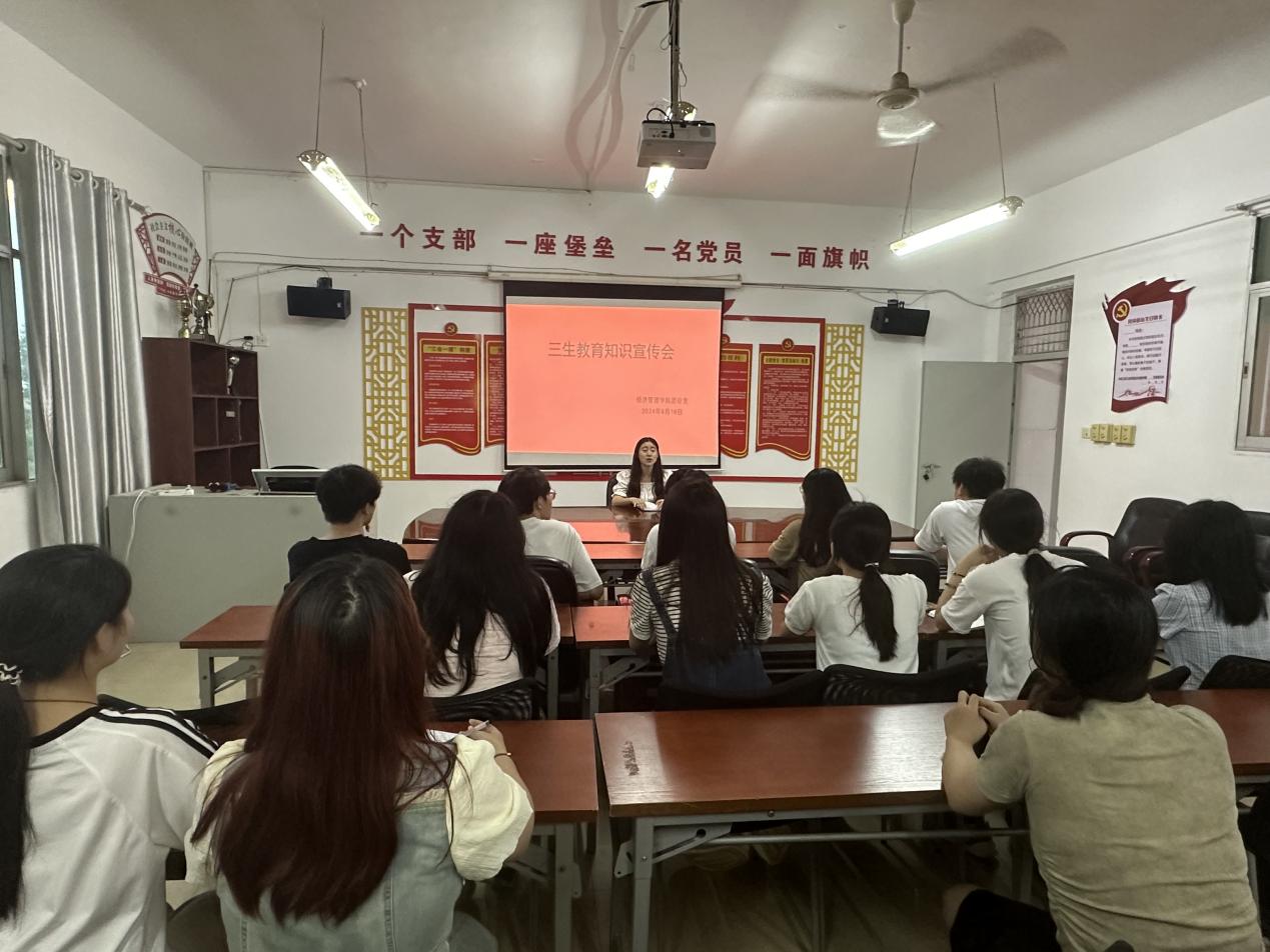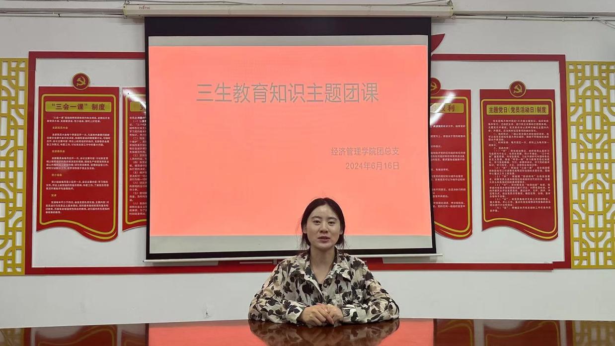 “三生教育”通过生命教育、生存教育与生活教育的综合施教,深化道德教育与素质教育的内涵,强化社会主义核心价值体系的构建。其目标在于培育兼具自由思想、独立人格、创新精神及全面发展的新时代建设人。2024年6月16日,经济管理学院在B栋401会议室开展“三生教育”知识主题团课。