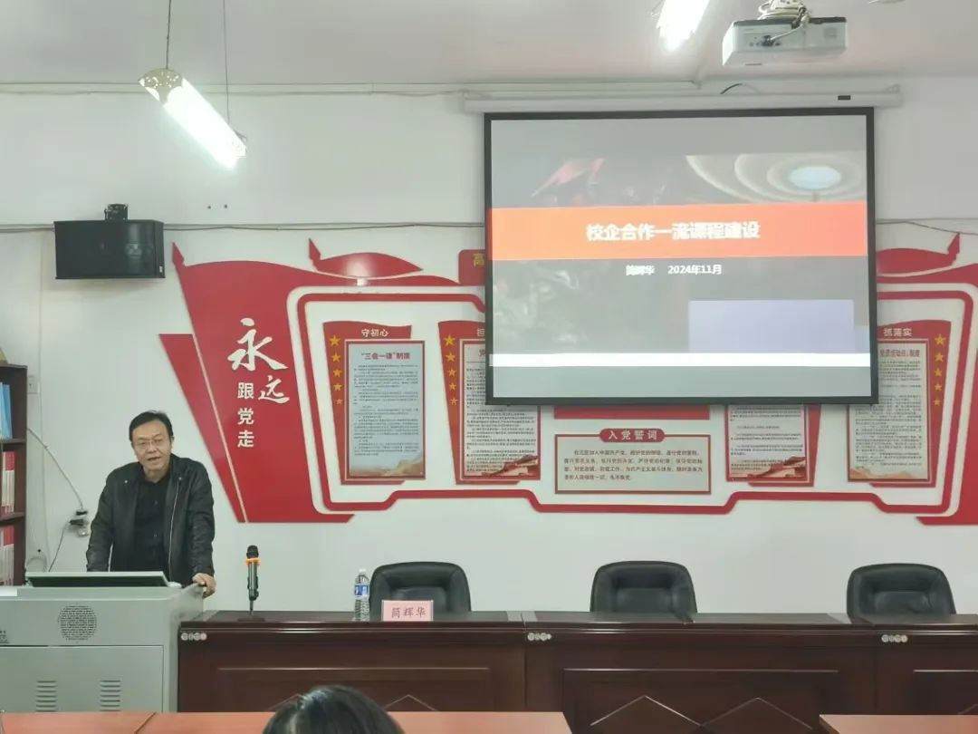 为做好校企合作一流课程建设与培育工作,进一步推动课程改革创新,促进校企合作协同育人,11月8日下午3点,我院邀请高级实验师、国家职业技能鉴定中心考评员、全国应用型人才培养工程专家简辉华教授在天工校区南教学楼B201会议室开展“校企合作一流课程建设”专题讲座。我院全体教职工参加此次讲座。