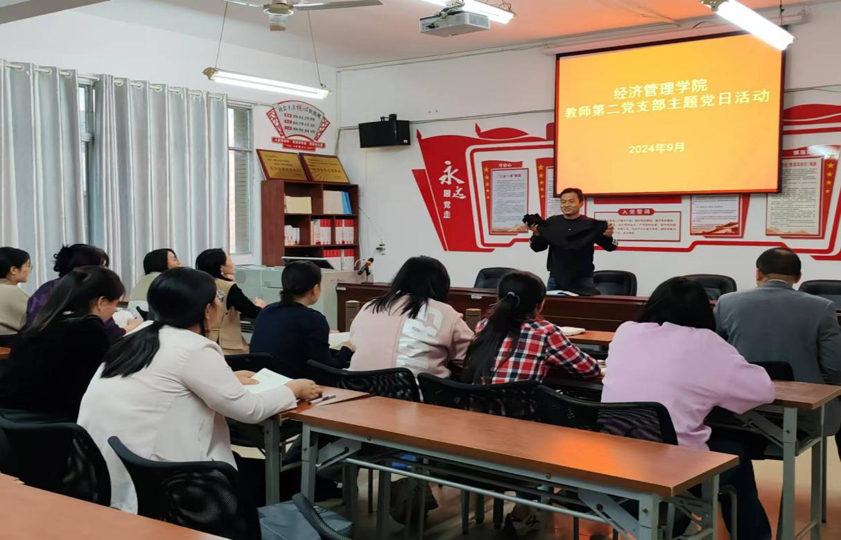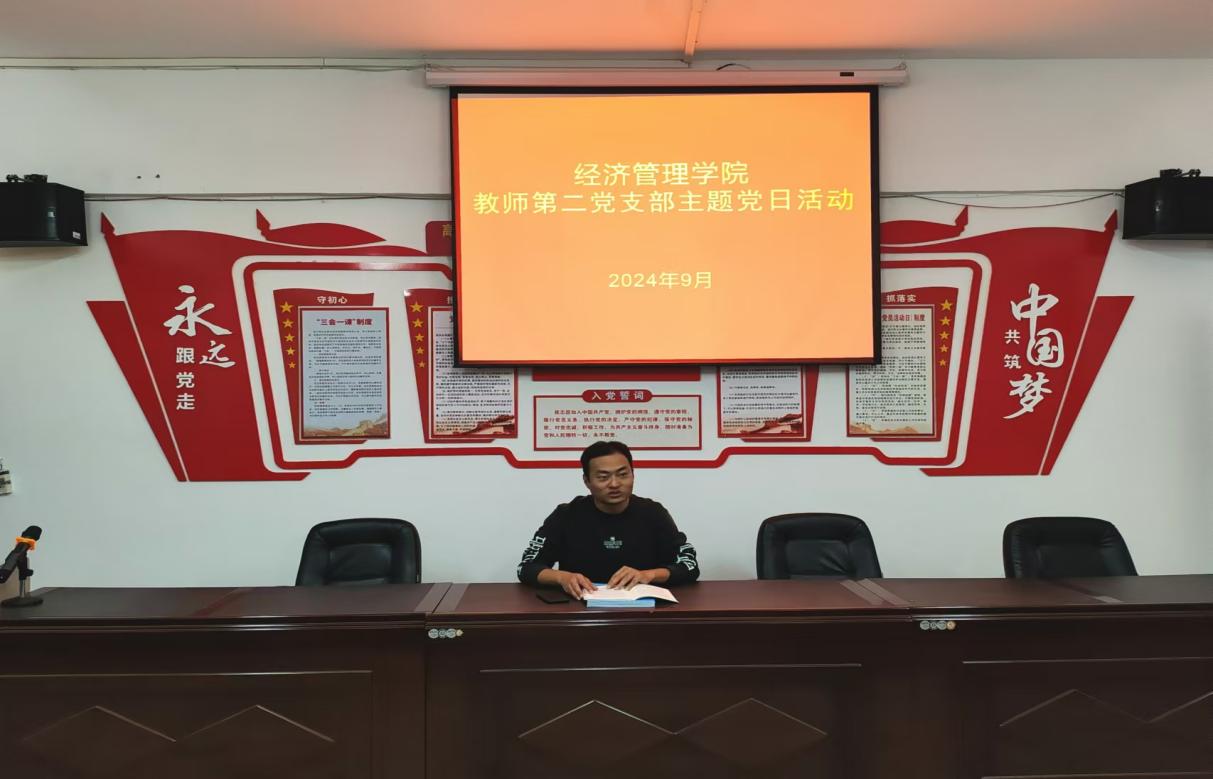 为深入学习贯彻习近平新时代中国特色社会主义思想和党的二十届三中全会精神,全面提升政治素养。2024年9月13日下午,经济管理学院教师第二党支部开展九月份主题党日活动。此次党日活动由经济管理学院教师第二党支部书记郭伟光主持,教师第二党支部全体党员教师参加。