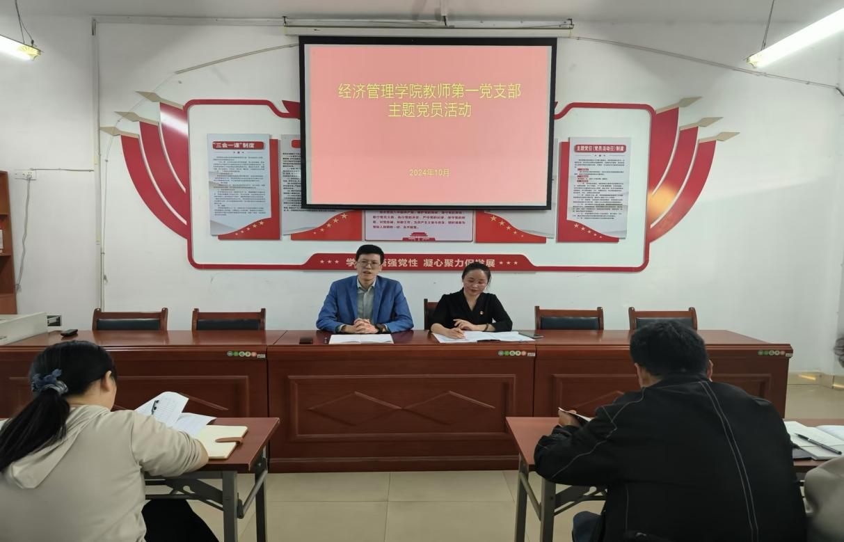 为深入学习贯彻习近平新时代中国特色社会主义思想,2024年10月13日下午,经济管理学院教师第一党支部开展十月份主题党日活动。此次党日活动由经济管理学院院长兼教师第一党支部书记谭文武主持,教师第一党支部全体党员教师参加。
