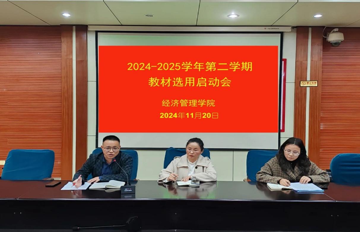 为确保下一学期教学活动高质量开展,为新学期的教学工作打下坚实基础,确保每位学生都能获得最优质的学习资源。2024年11月20日,经济管理学院召开了2024-2025学年第二学期教材选用启动会。会议由副院长朱伙军主持,党总支书记张文凤,副院长邹莉及全体教师参加。
