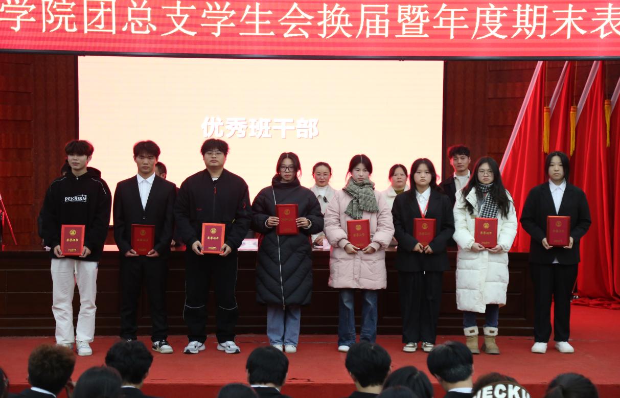 大会议程第三项,由专职辅导员尹冬慧宣读受表彰学生名单;院领导老师为2023届团总支学生会干部代表及年度优秀班干部、优秀团学工作者颁发荣誉证书。